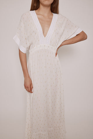 Vestido Midi Cuello V con Tejido Lúrex