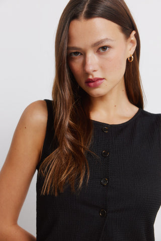 Chaleco Corto Cuello Redondo con Botones