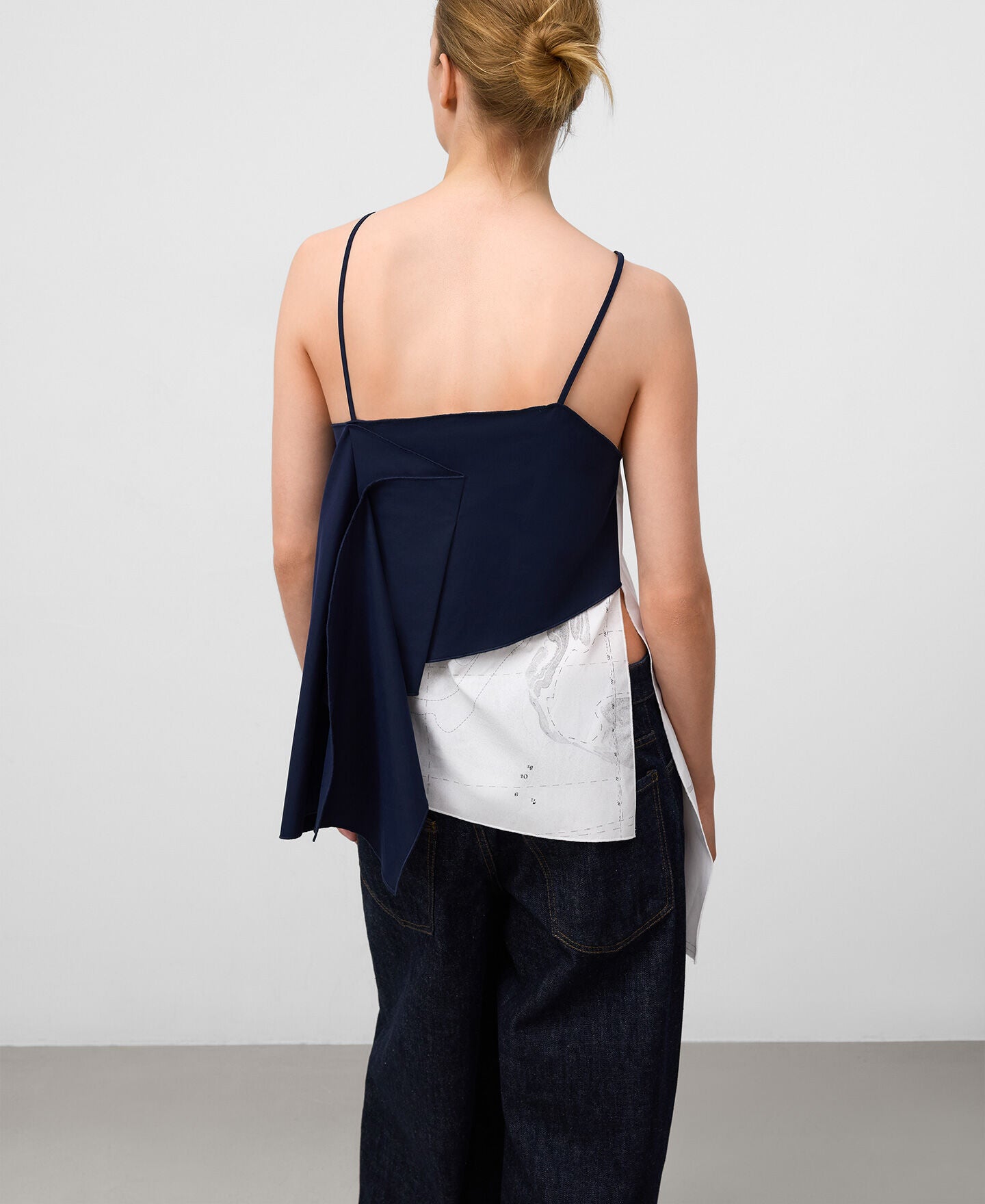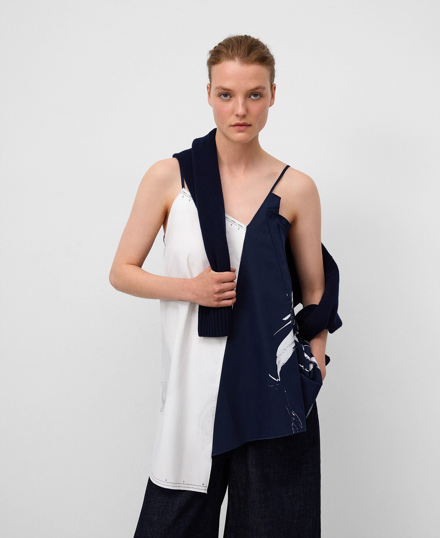 • Piezas superpuestas en dos tejidos y estampados diferentes de la Colección Aqua