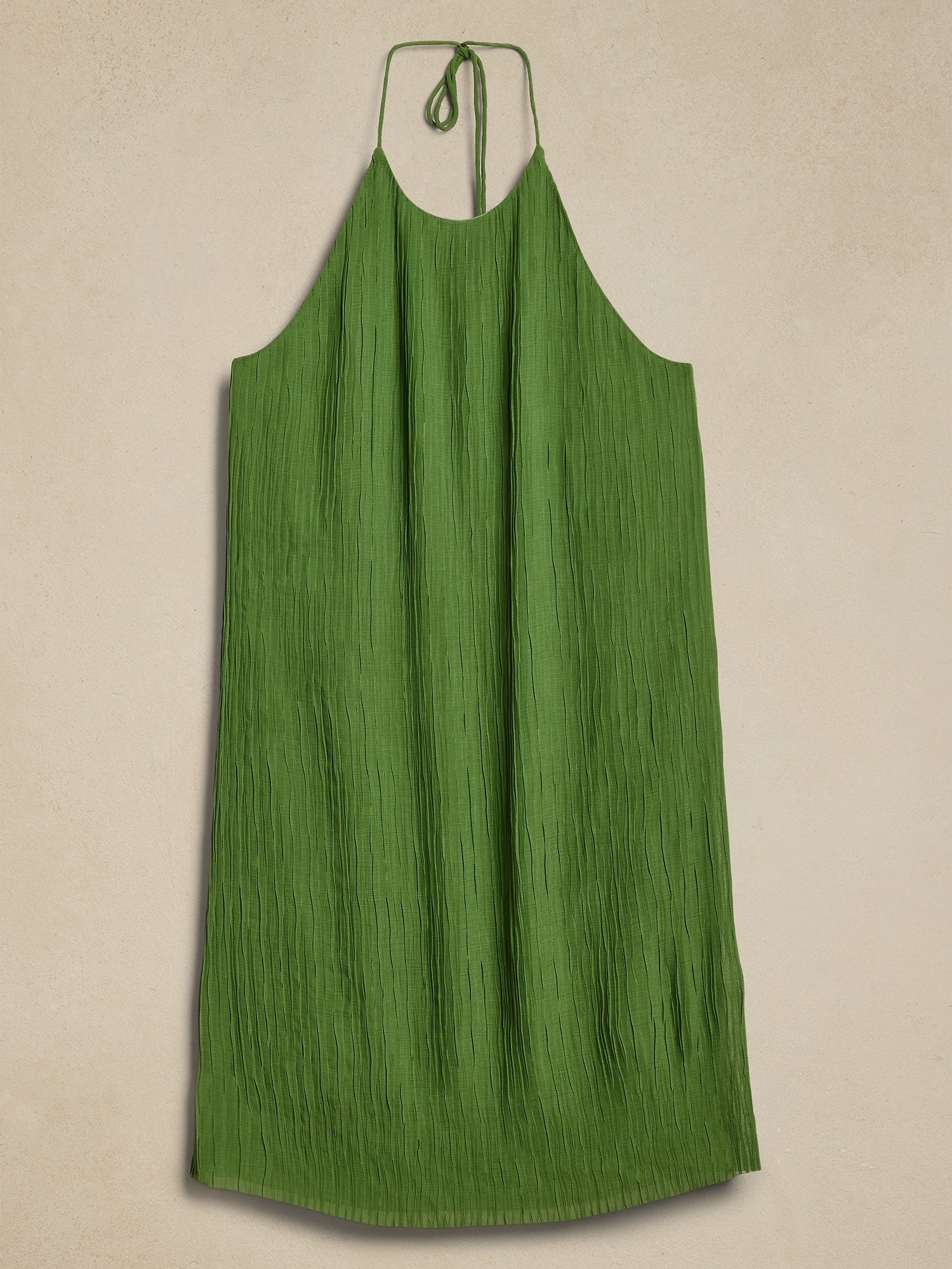 • Este vestido halter está diseñado para sorprender en verano con una silueta halter atemporal, confeccionado con una tela texturizada arrugada que nos encanta por su lujosa textura