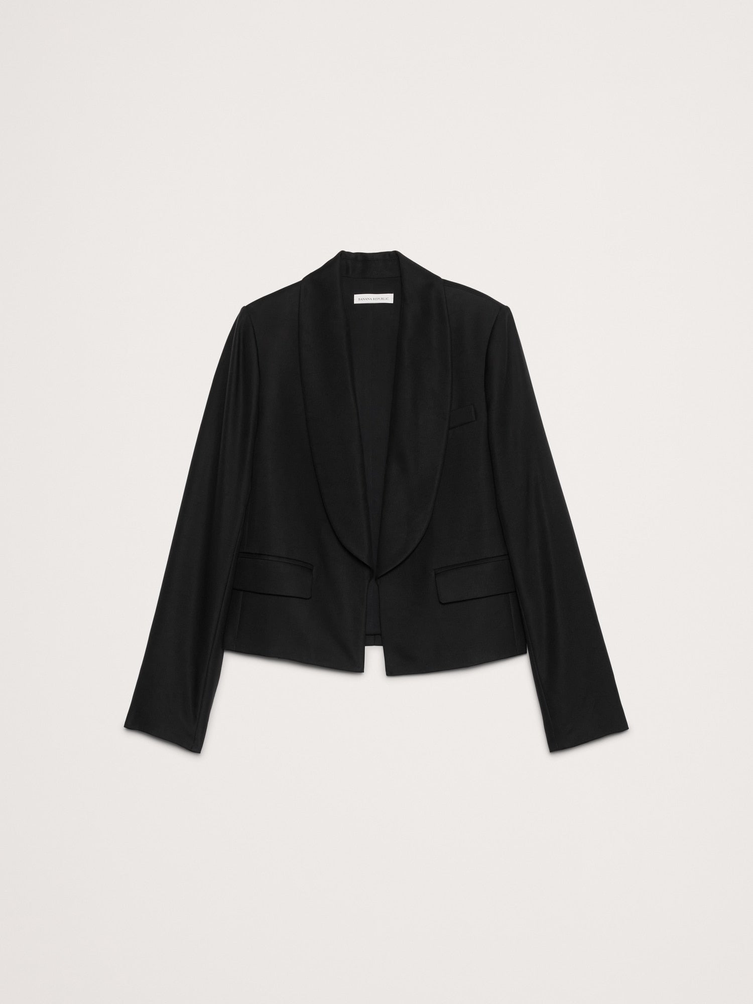 - Como una invitación a jugar con las proporciones, cortamos esta chaqueta de esmoquin con un cuello chal atemporal, pero optamos por un frente abierto y un corte más cuadrado y ligeramente recortado para que se sienta muy ahora