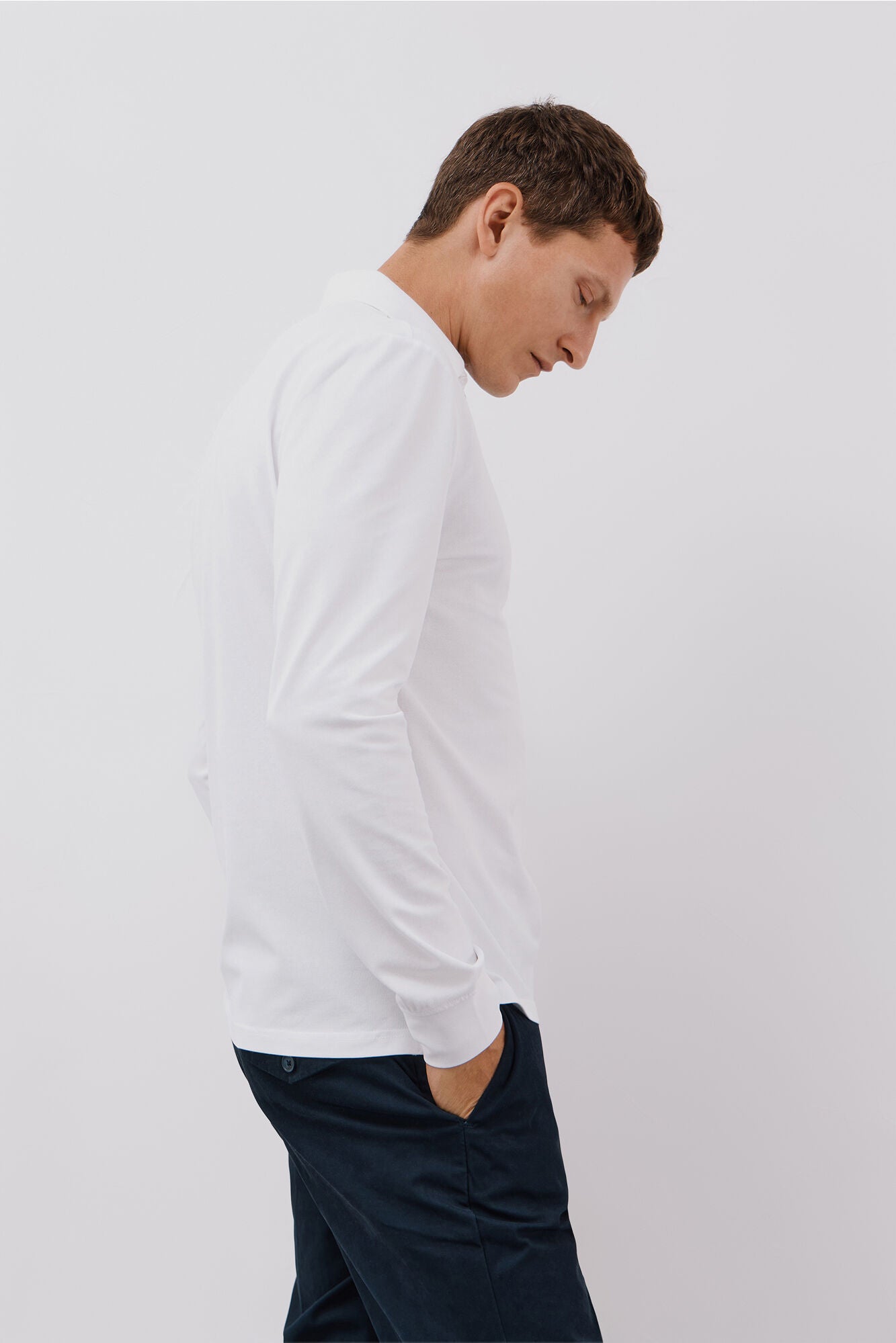 • Tapeta frontal con botones ocultos y logo bordado en pecho