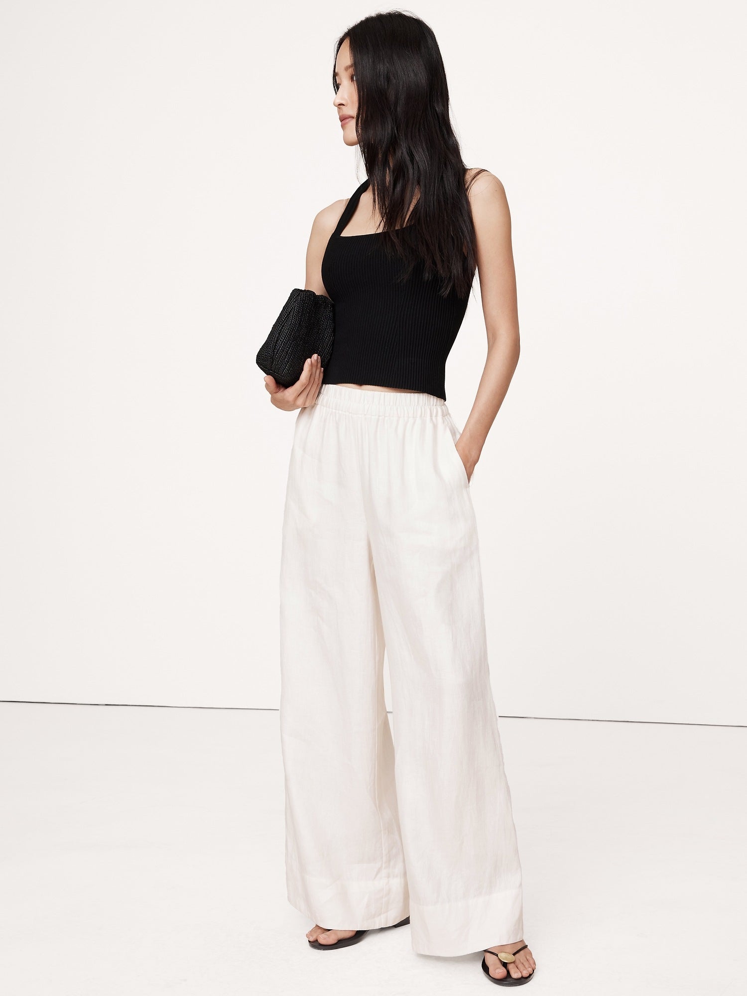 Pantalón Talle Alto con Bolsillos de Lino – Line Up Shop