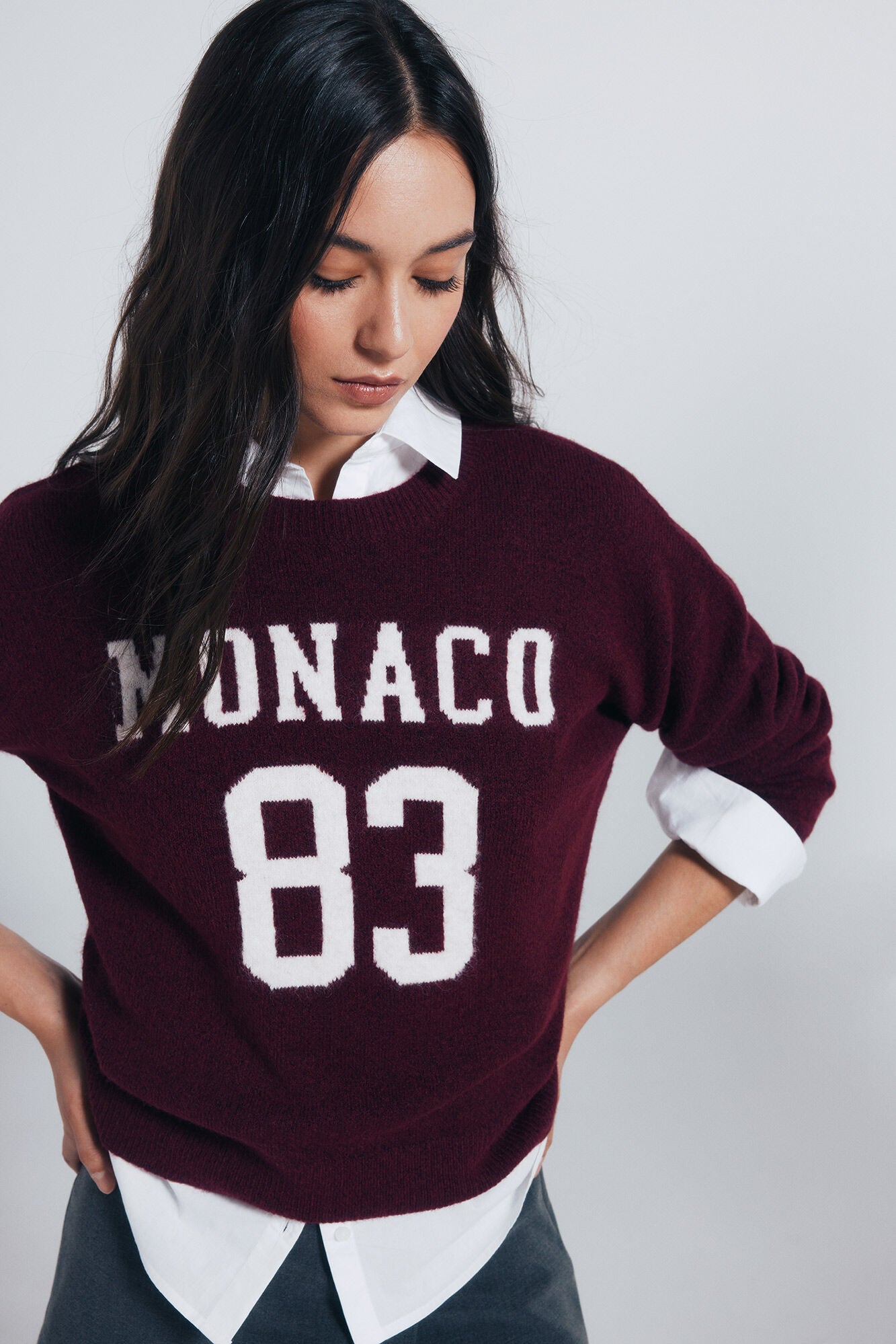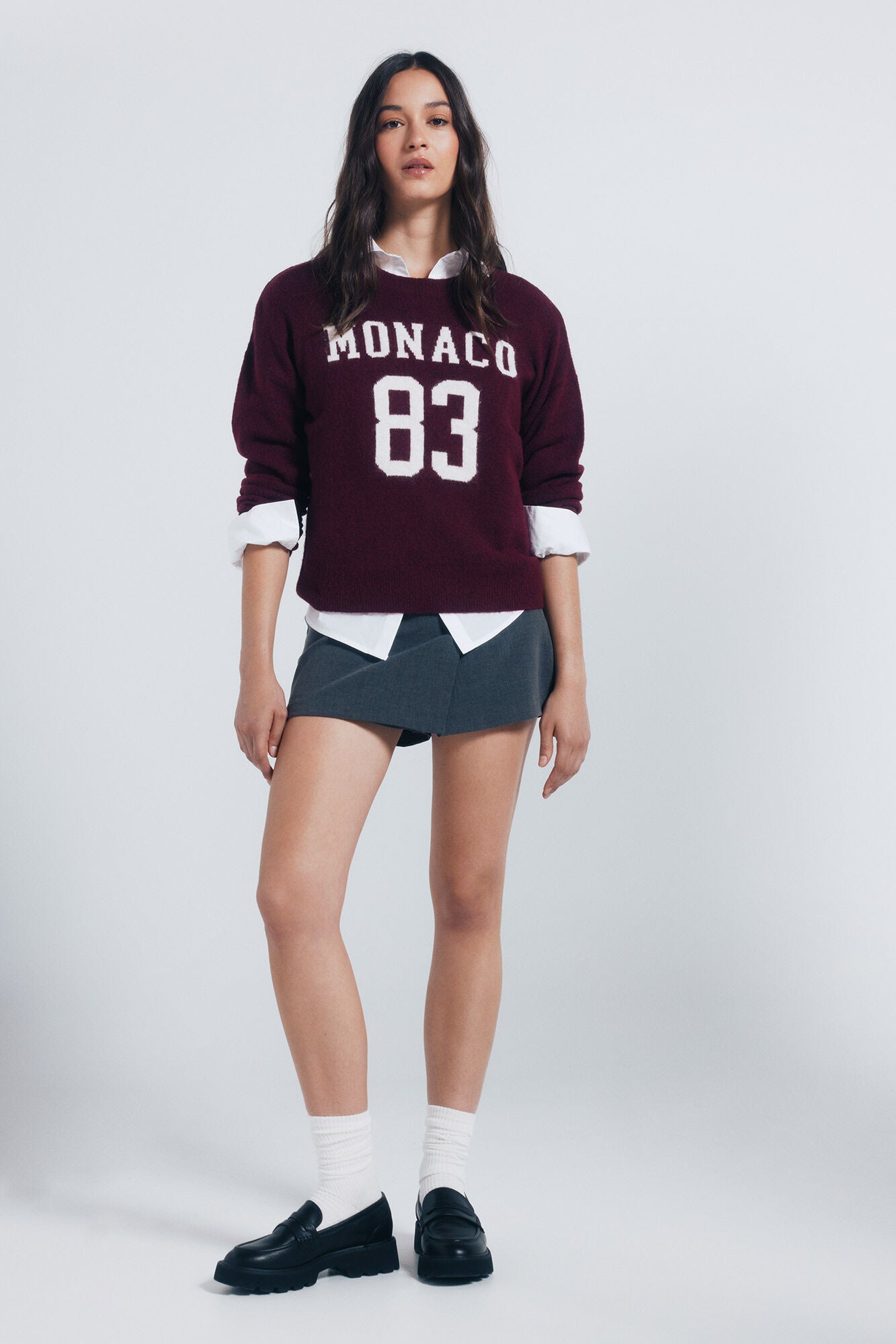 • Con cuello redondo, de color liso con texto y número en el delantero, con canalé en el cuello en los puños y en el bajo