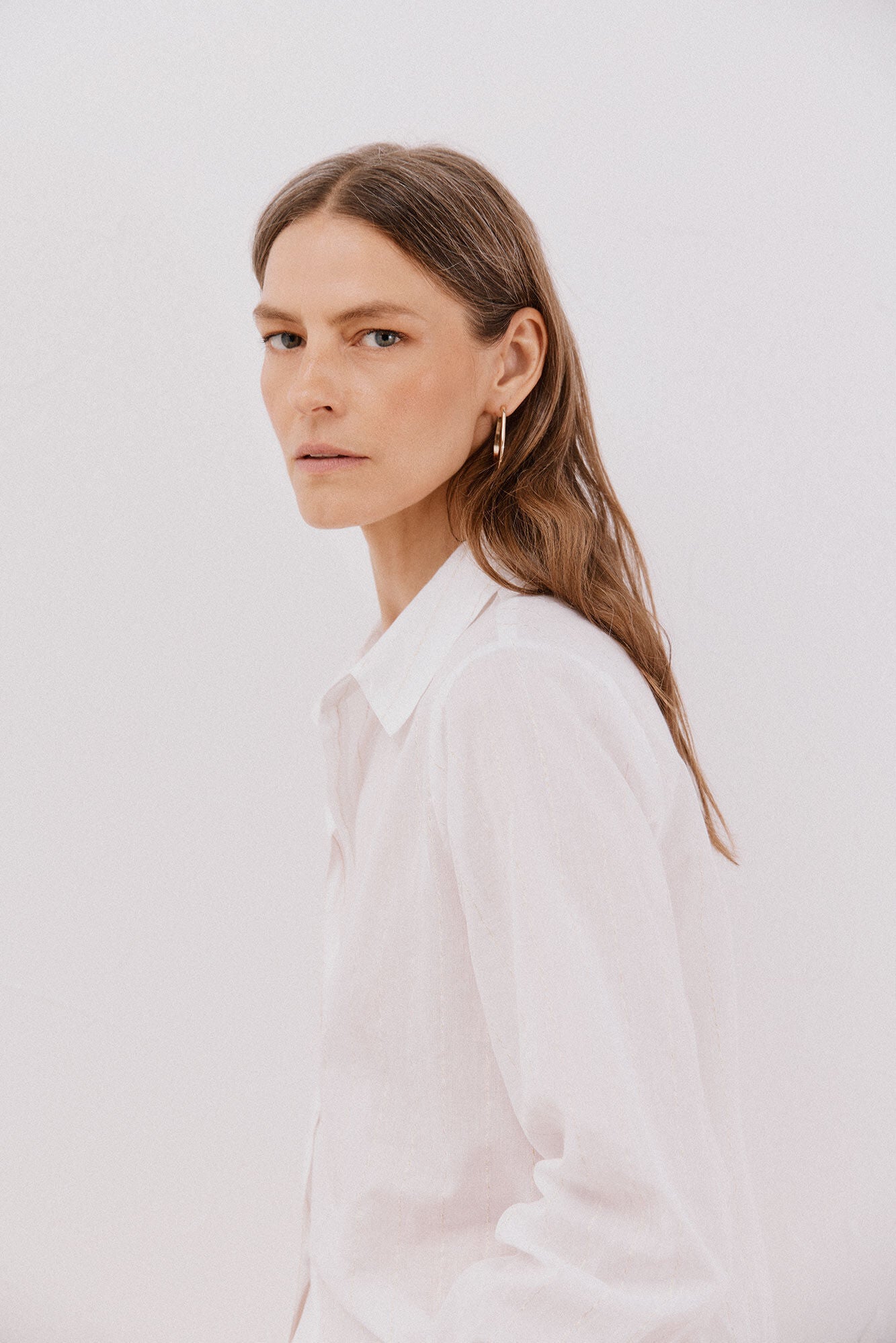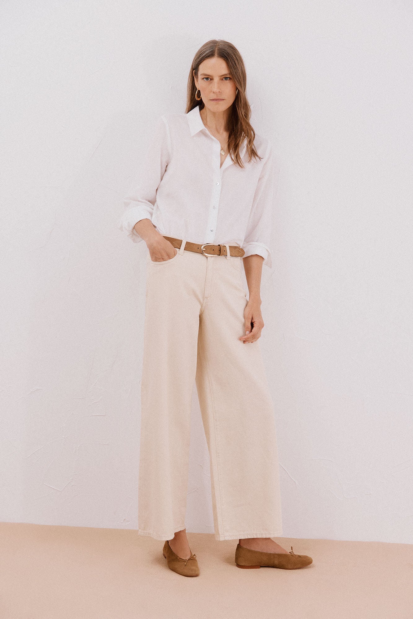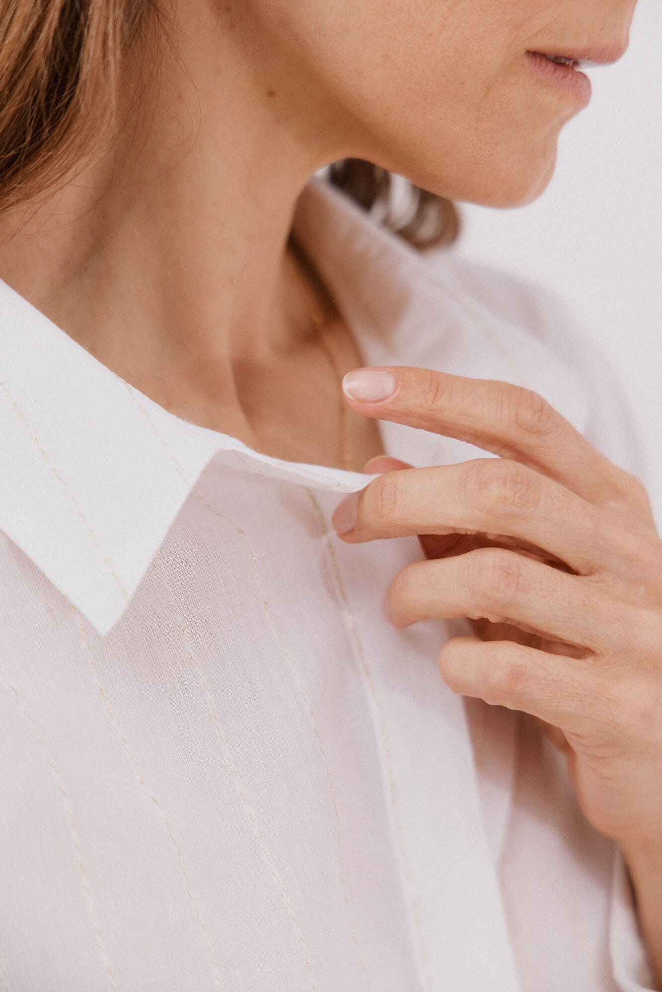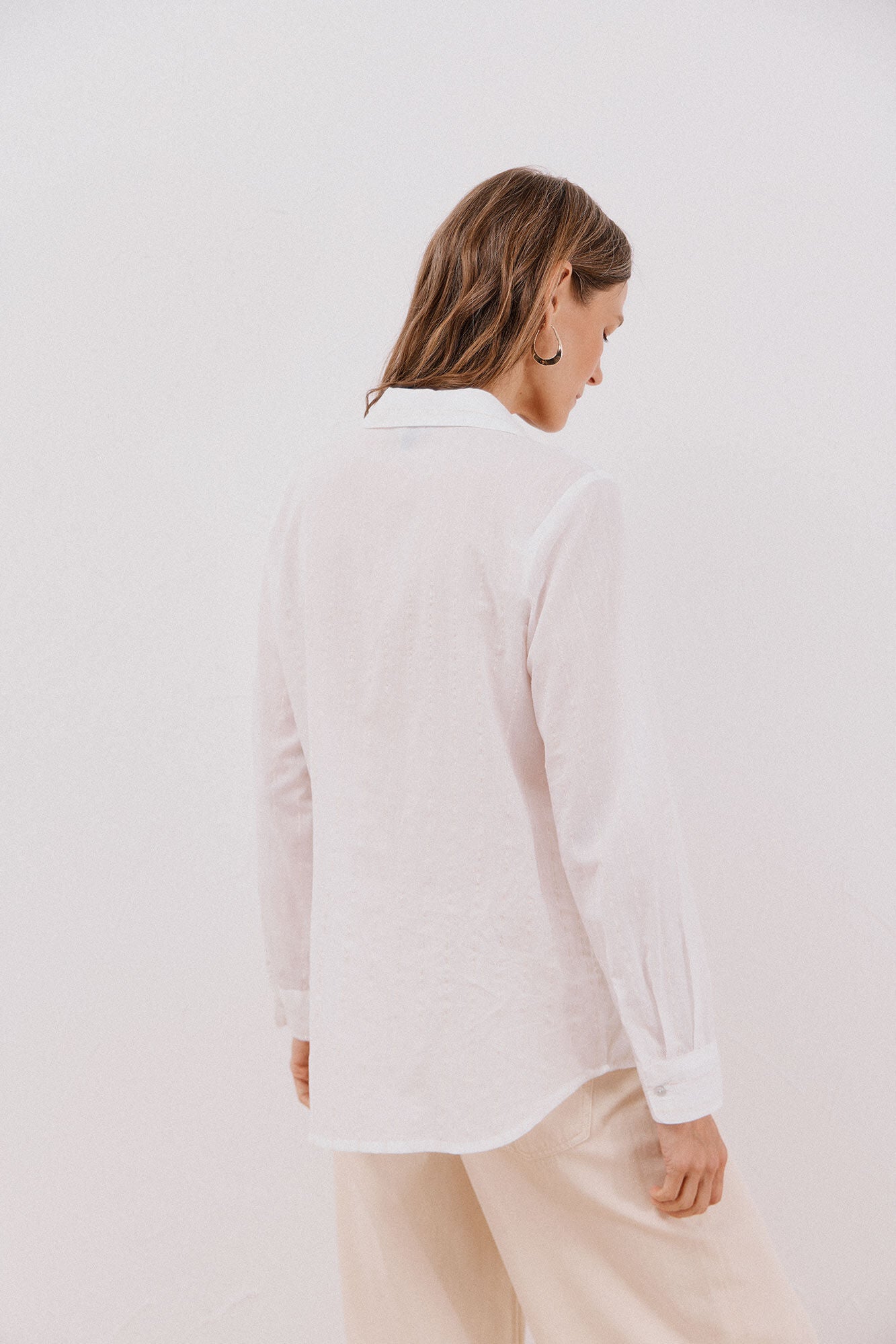 • Camisa de cuello solapa con escote pico y manga larga acabada en puño