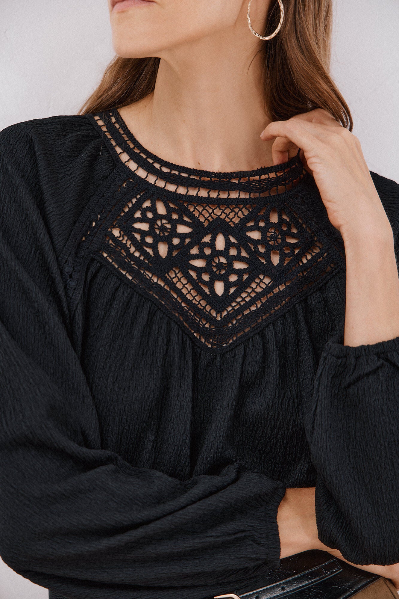 Blusa Manga Larga con Detalle Crochet | Line Up Shop