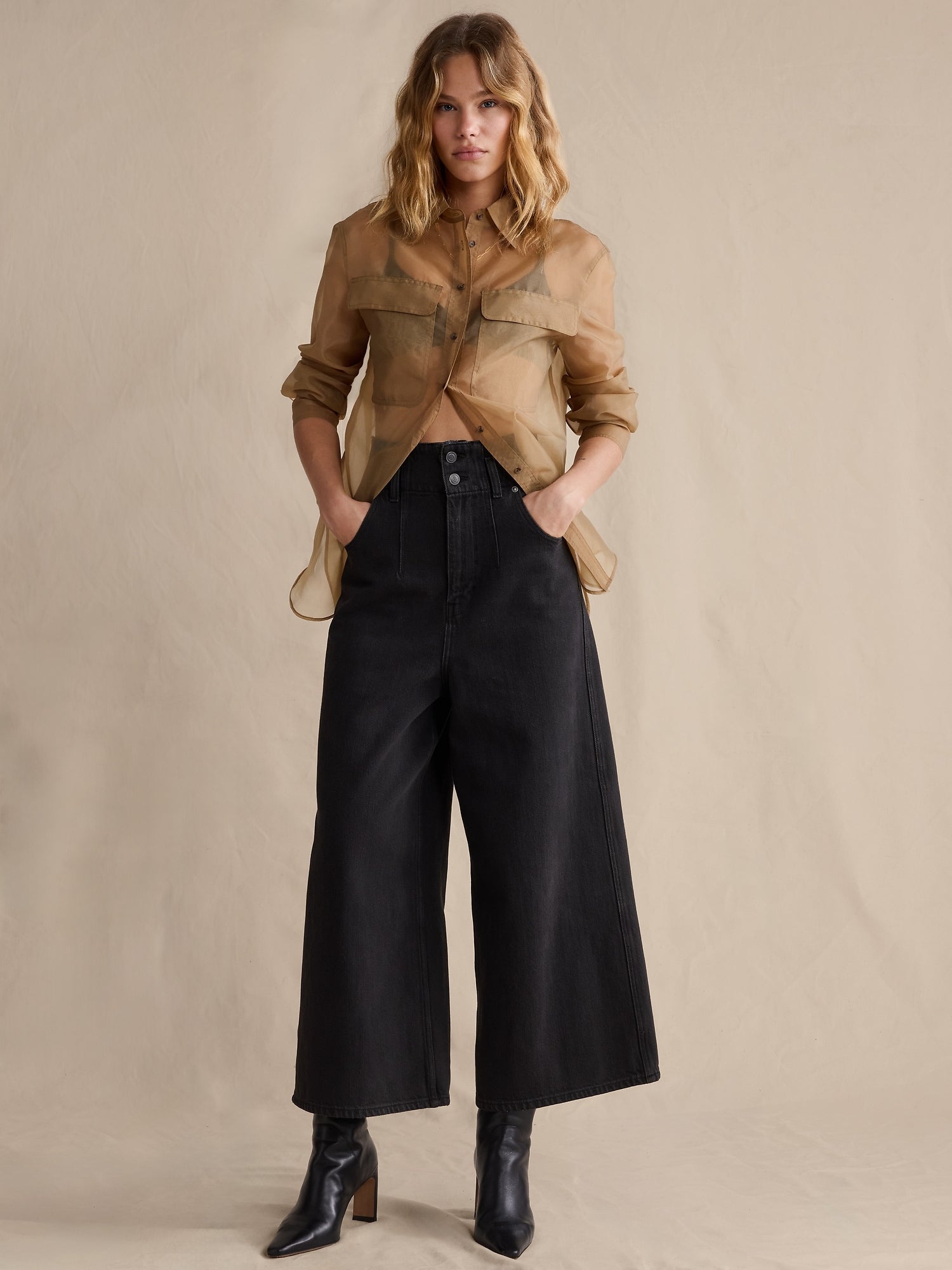 Jeans Culotte Talle Alto con Bolsillos