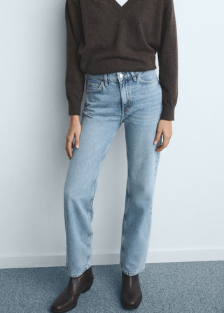 Jeans Rectos Talle Medio con Bolsillos