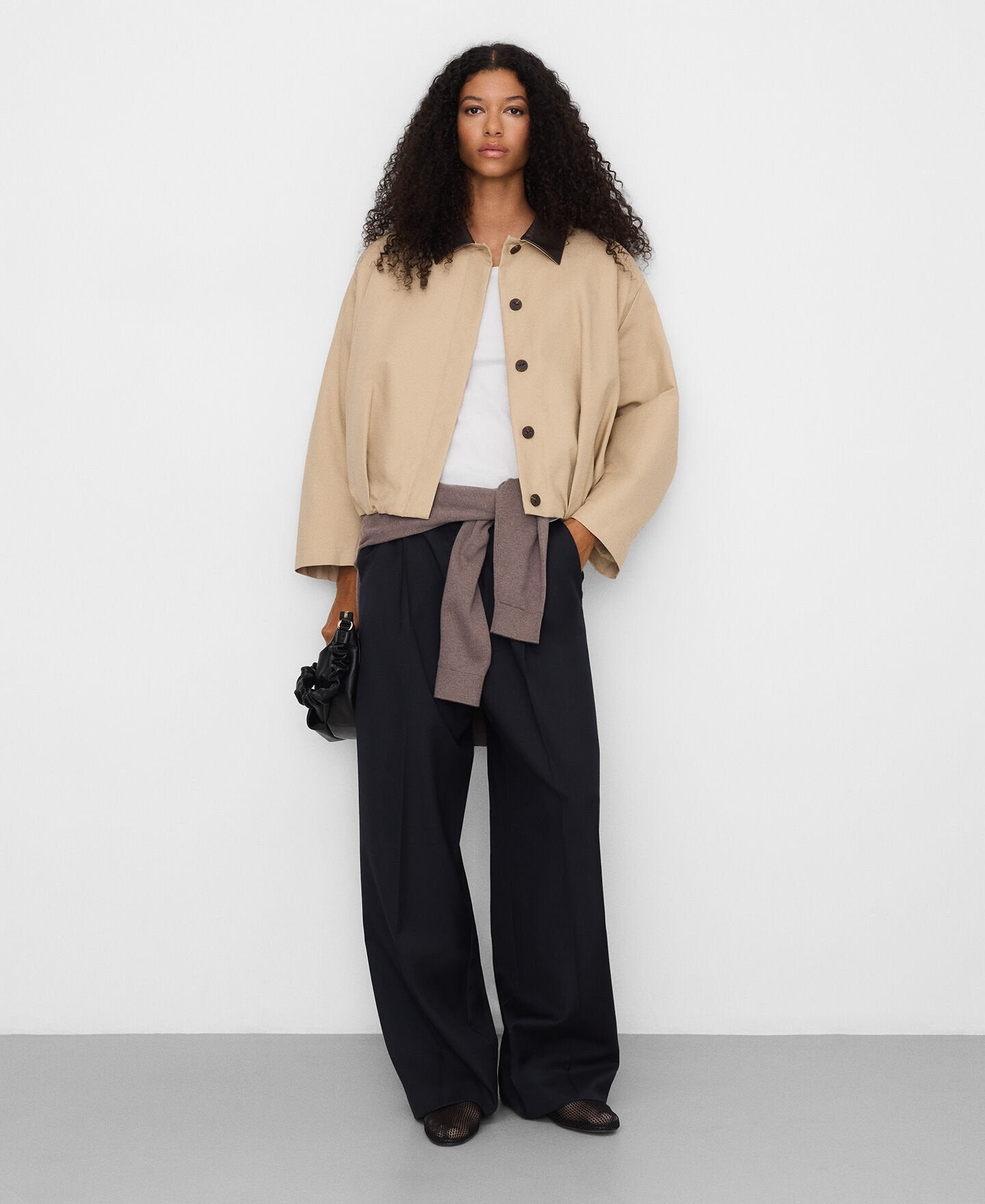 • Cuello italiano en piel con cierre botón
