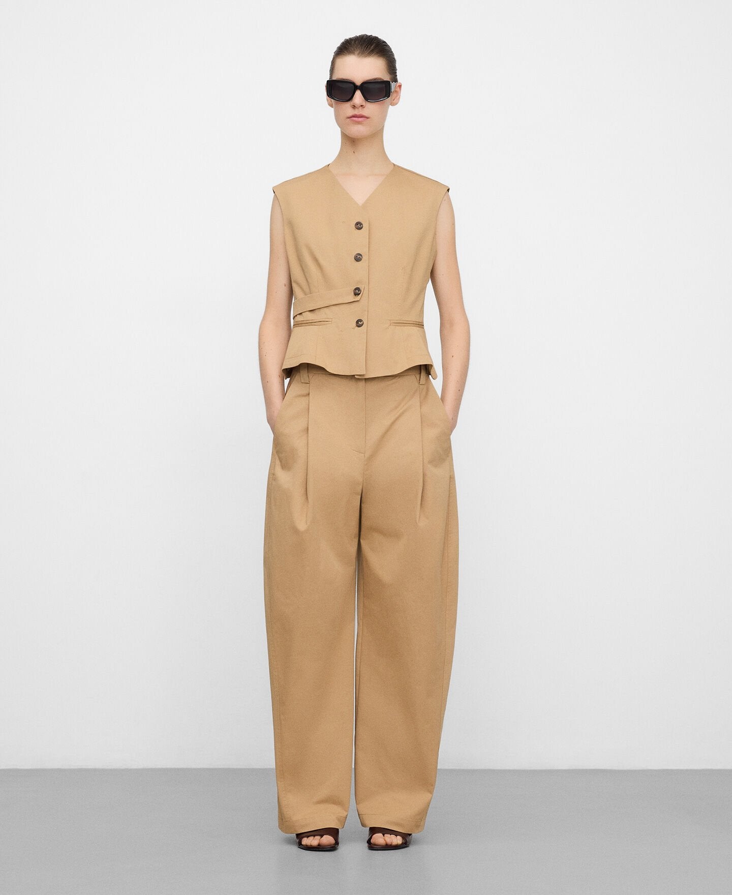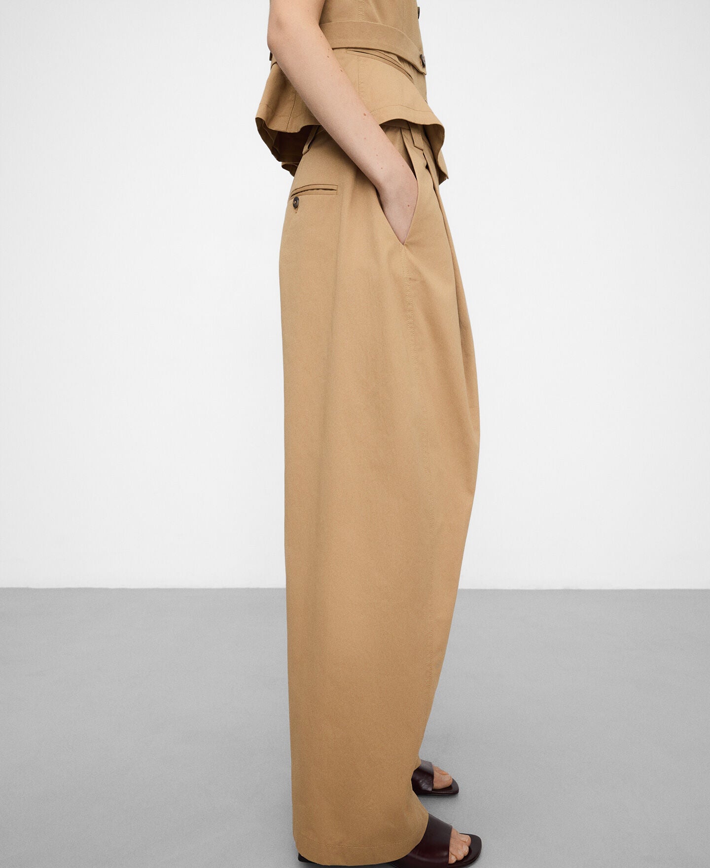 • Pantalón barrel fit camel algodón orgánico