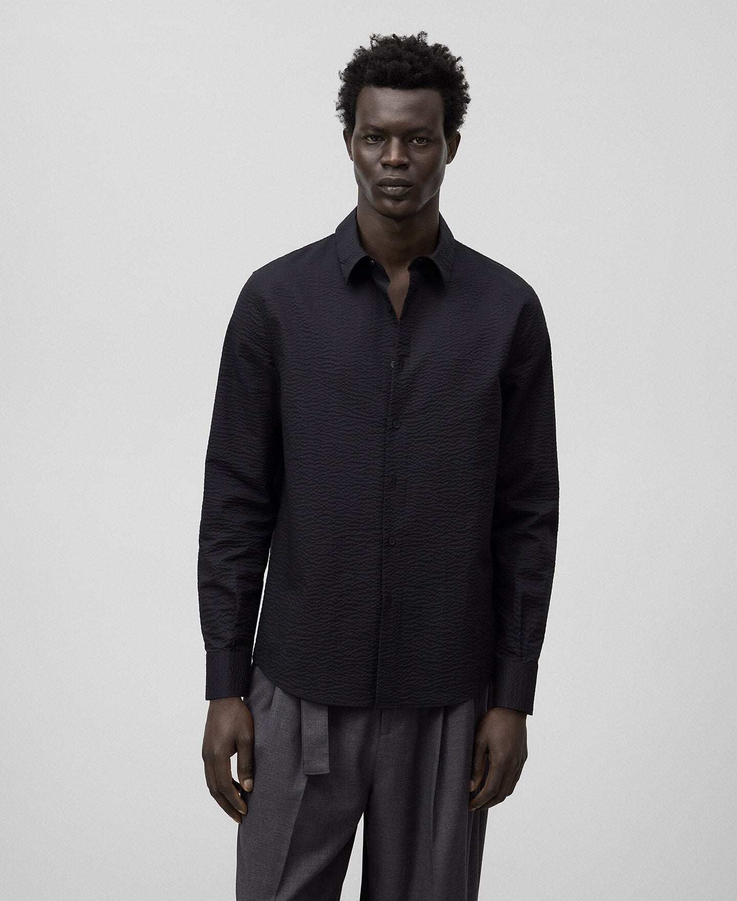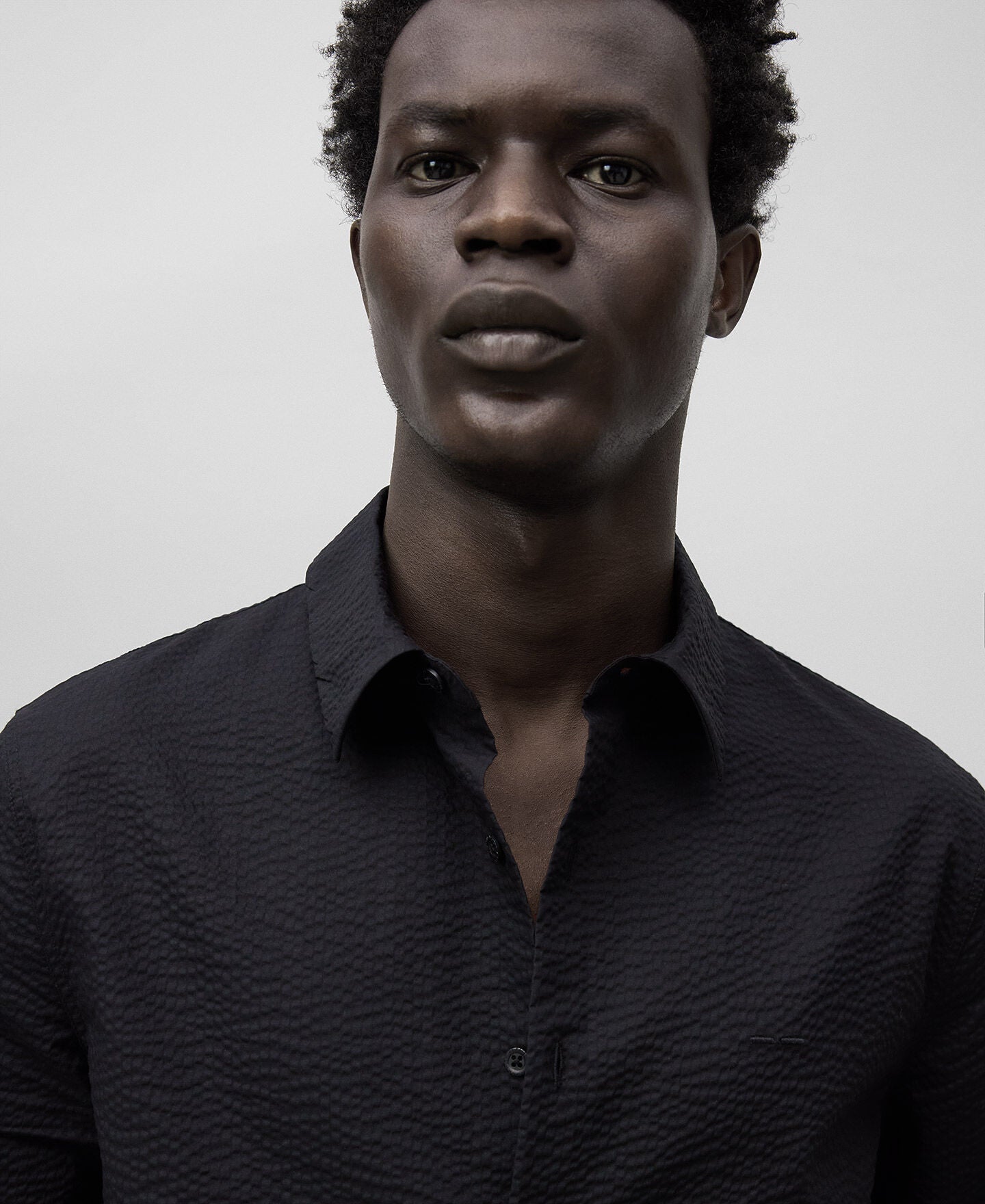 Para camisas casuales, buscá una que te quede bien y colócala sobre una mesa. Medí el borde "superior" del collar. Para camisas de vestir, medí alrededor de la base de tu cuello, dejando un dedo entre la cinta métrica y tu piel.