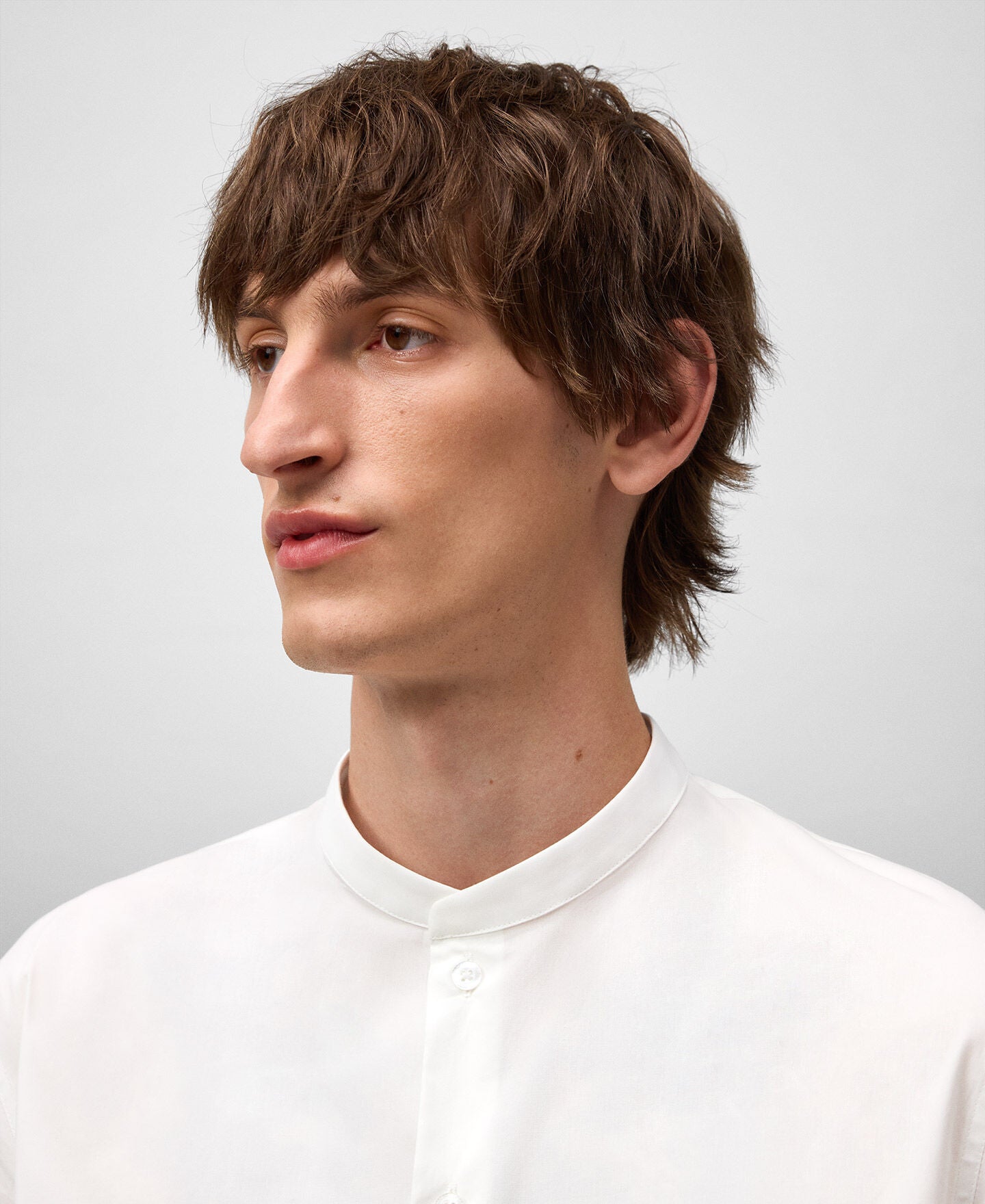 Para camisas casuales, buscá una que te quede bien y colócala sobre una mesa. Medí el borde "superior" del collar. Para camisas de vestir, medí alrededor de la base de tu cuello, dejando un dedo entre la cinta métrica y tu piel.