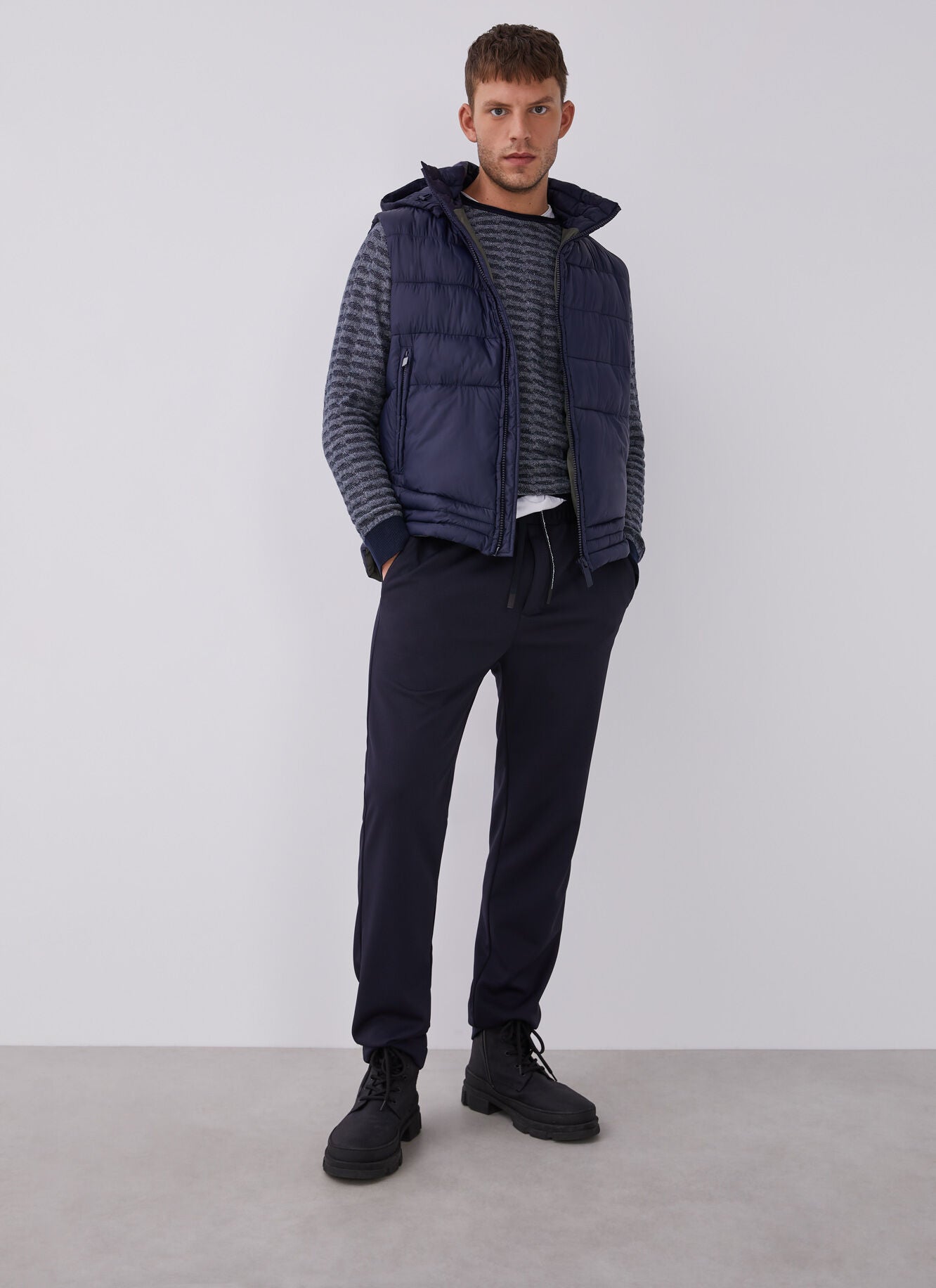 • Diseño jaspeado en azul marino y gris