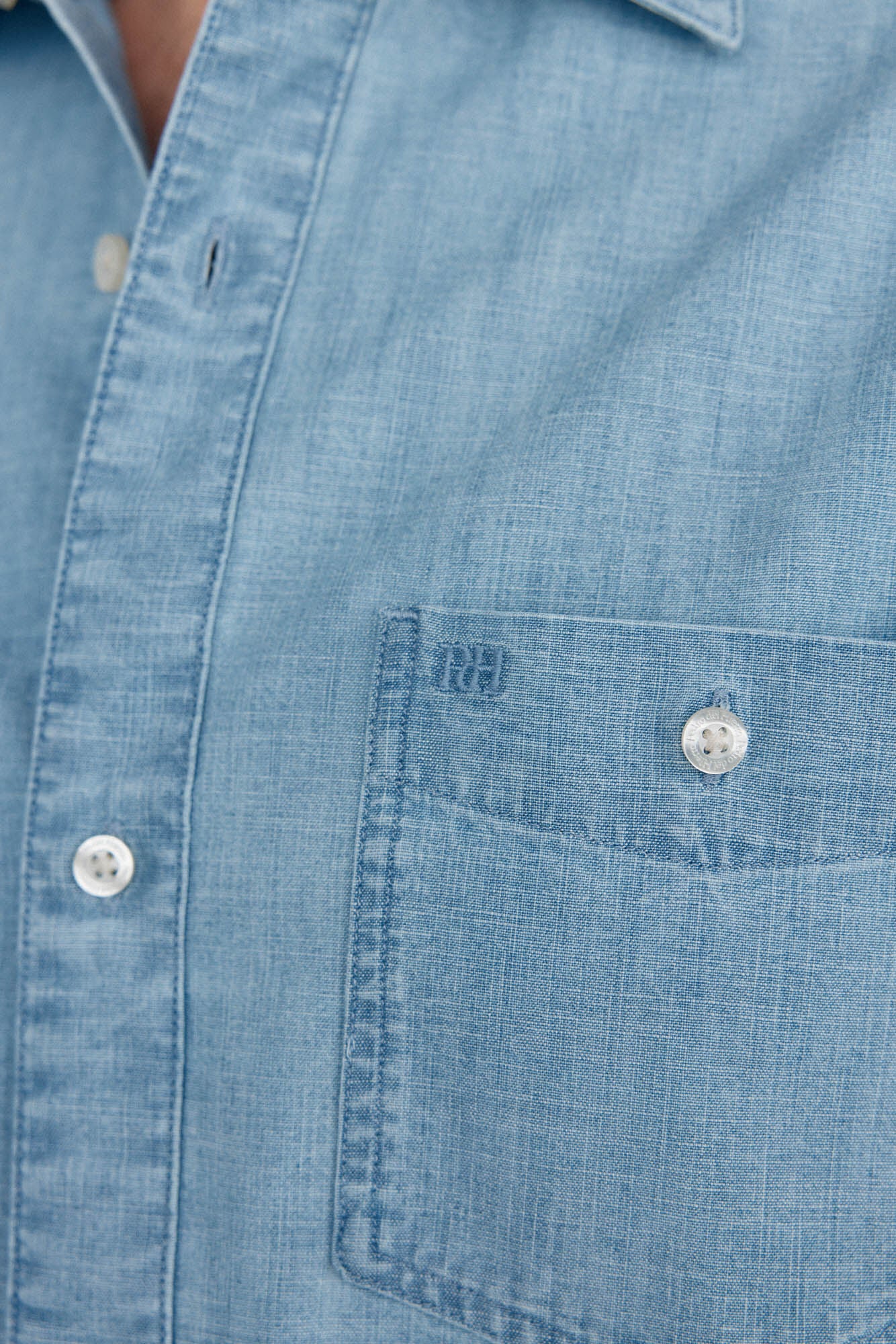 - Tejido chambray de 100% algodón con tintura índigo