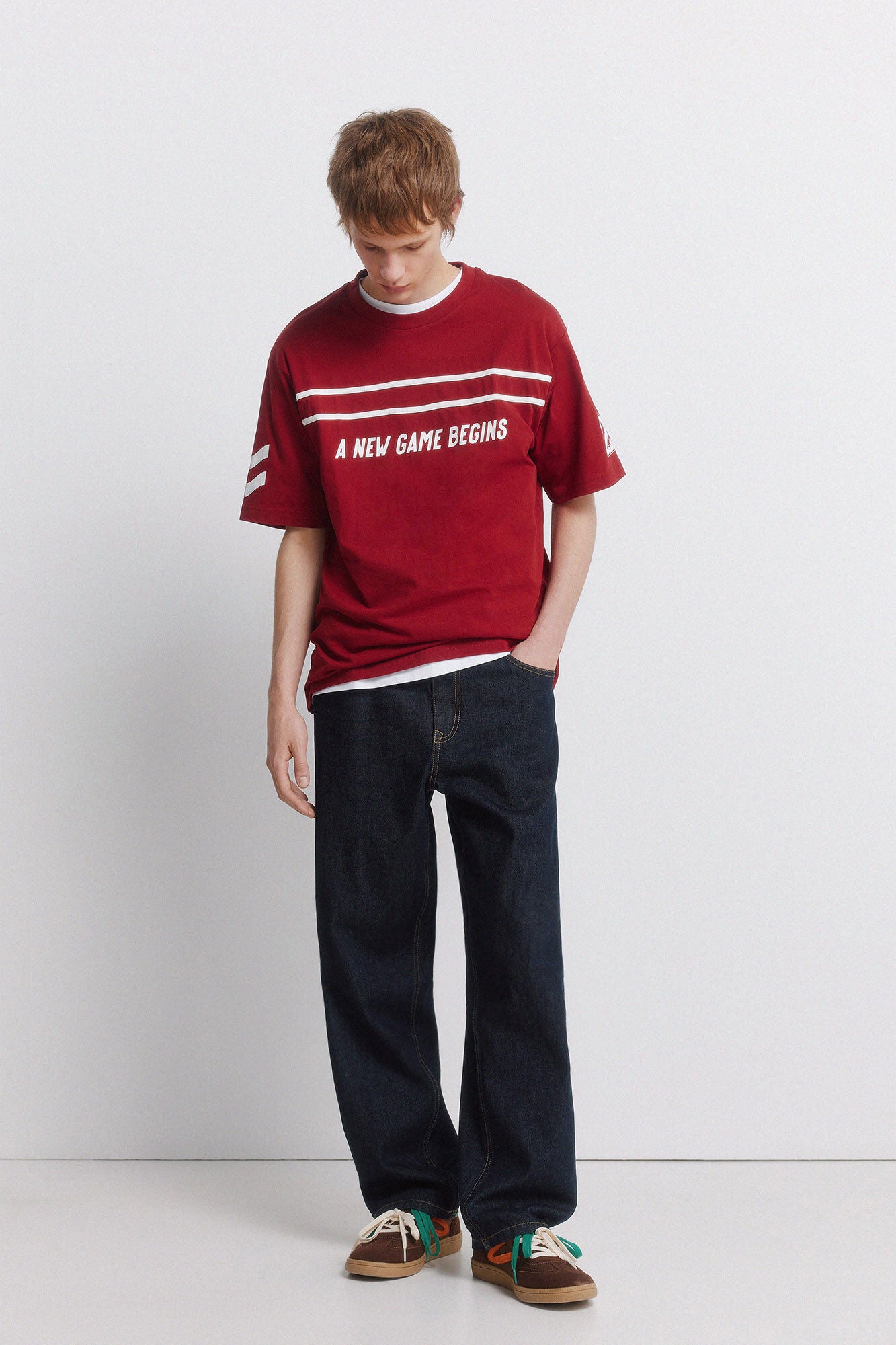 • Camiseta manga corta boxy fit en algodón