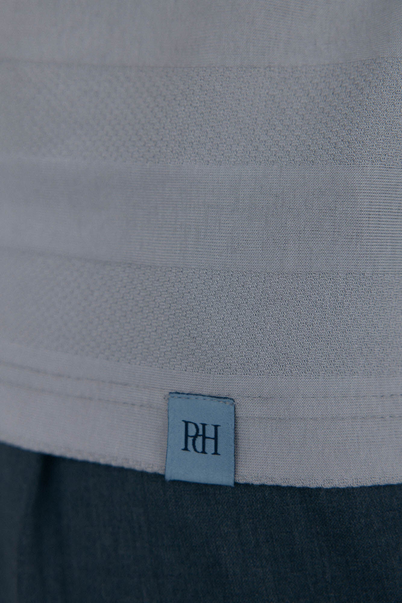 • Cuello abierto en V con etiqueta de logo en el bajo