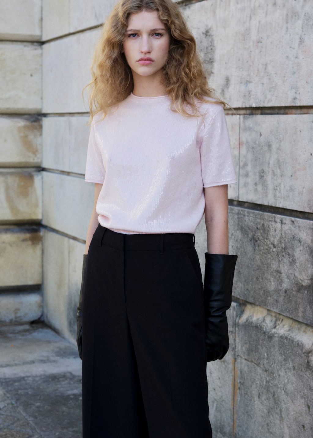 Sudadera Manga Corta con Lentejuelas – Line Up Shop