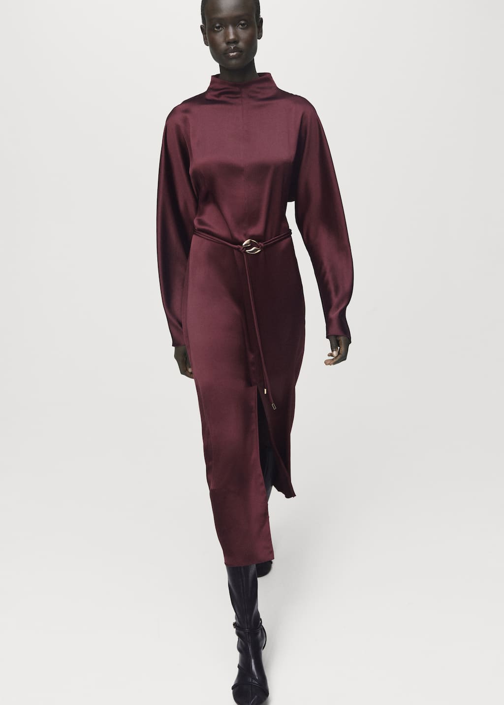 Vestido Satinado con Detalle de Cinturón – Line Up Shop