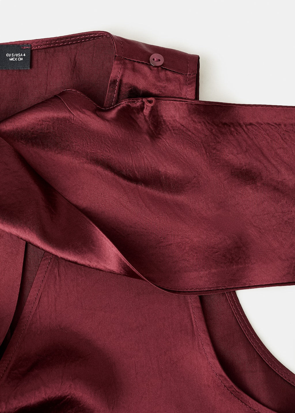 • Confeccionada en tejido satinado, esta prenda presenta un diseño recto de tirantes con un elegante cuello drapeado