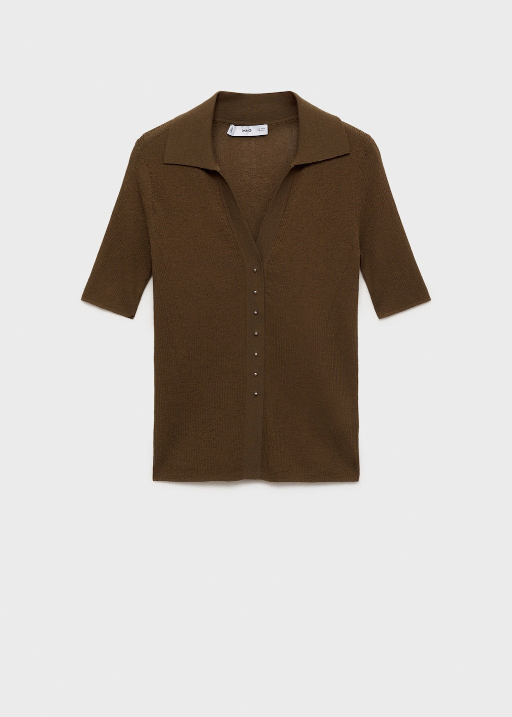 • Confeccionado en tejido de algodón de punto fino en canalé, este diseño entallado presenta un cuello camisero y manga corta