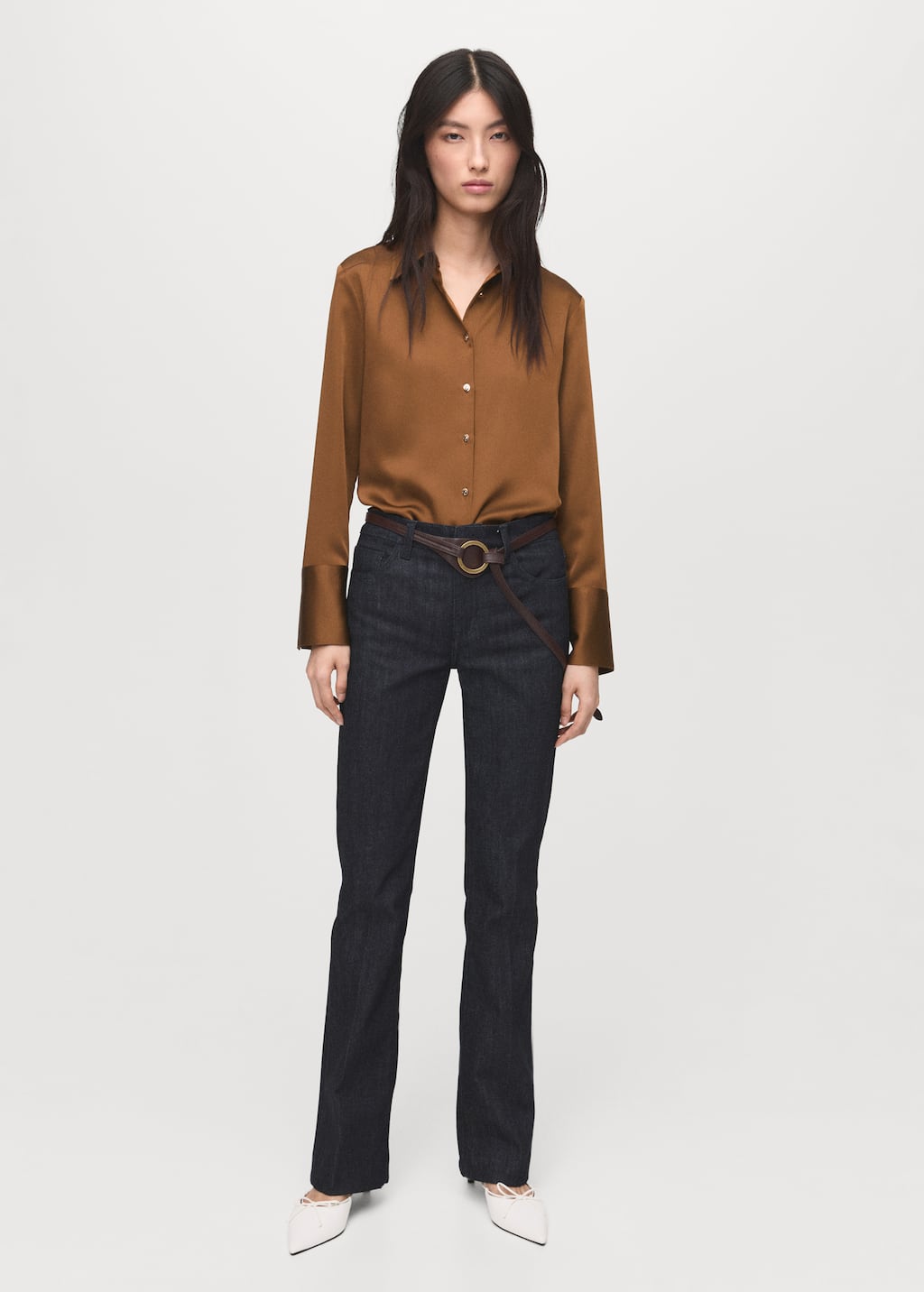 • Confeccionada en tejido con acabado satinado, esta prenda presenta un diseño recto y liso