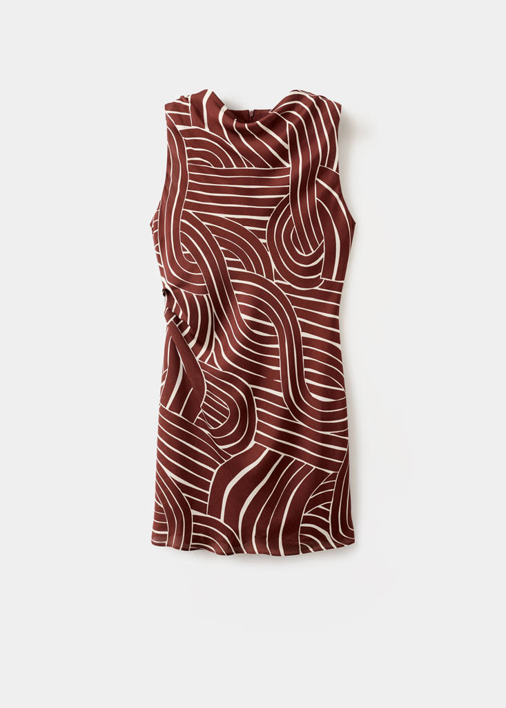 Vestido Escote Drapeado con Estampado Geométrico – Line Up Shop