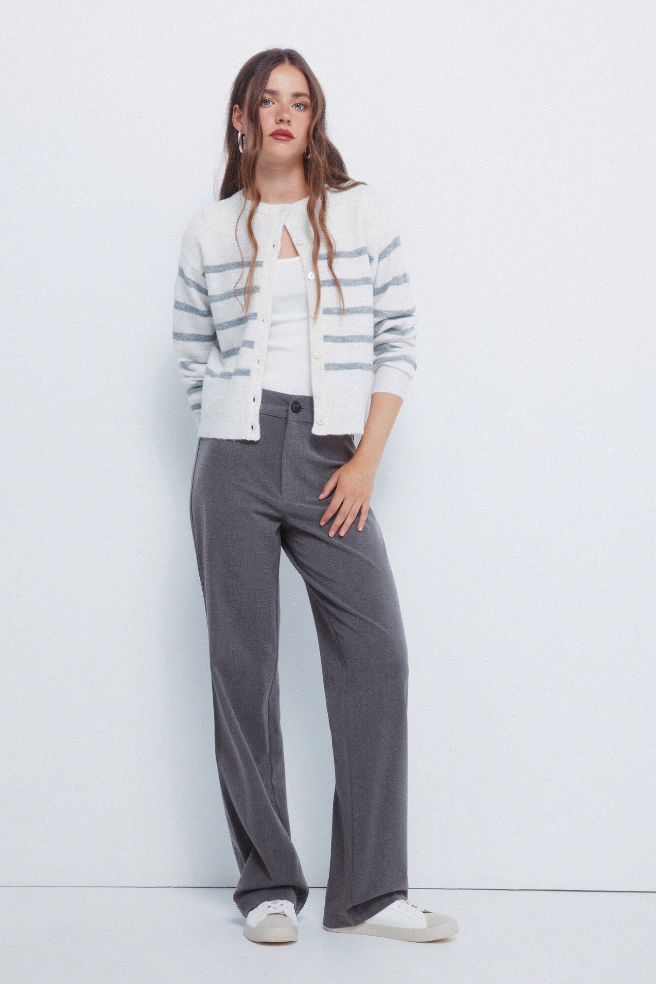 • Cárdigan corto de manga larga, con cuello redondo, con botones en el delantero, con canalé en los puños y en el bajo