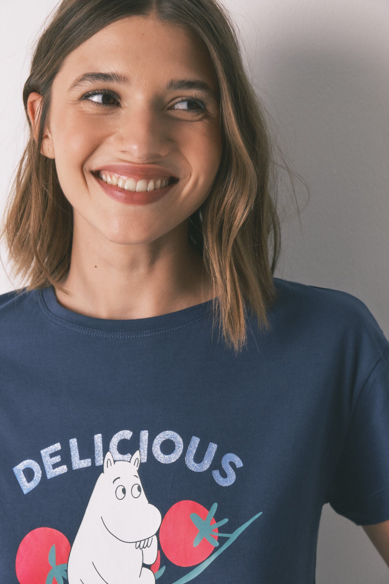 • Camiseta liso de manga corta, con escote redondo y posicionado frontal de Moomin