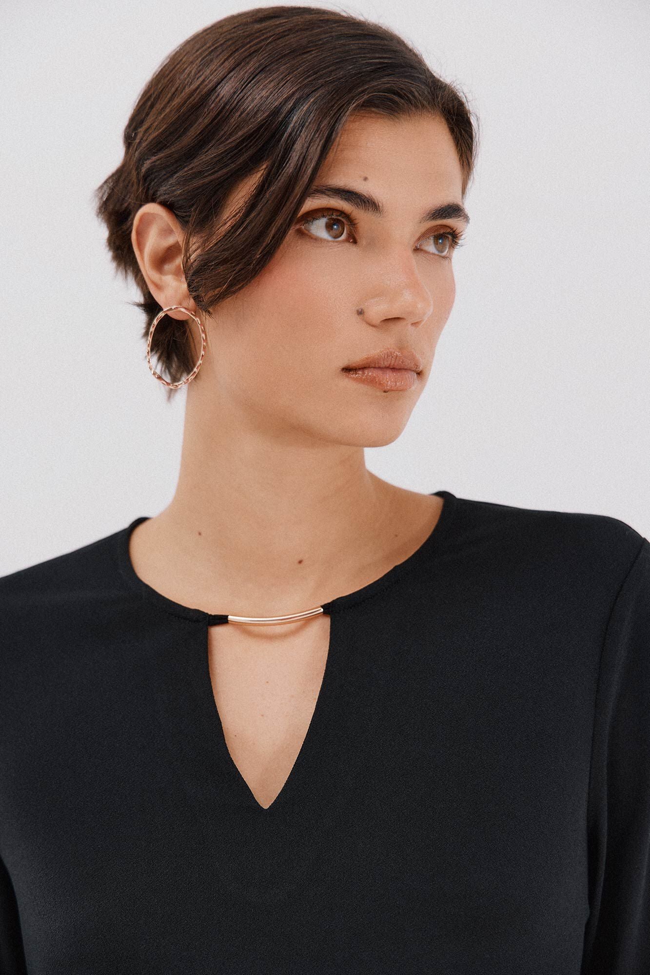 •  Camiseta con detalle de pieza metálica tubular en escote