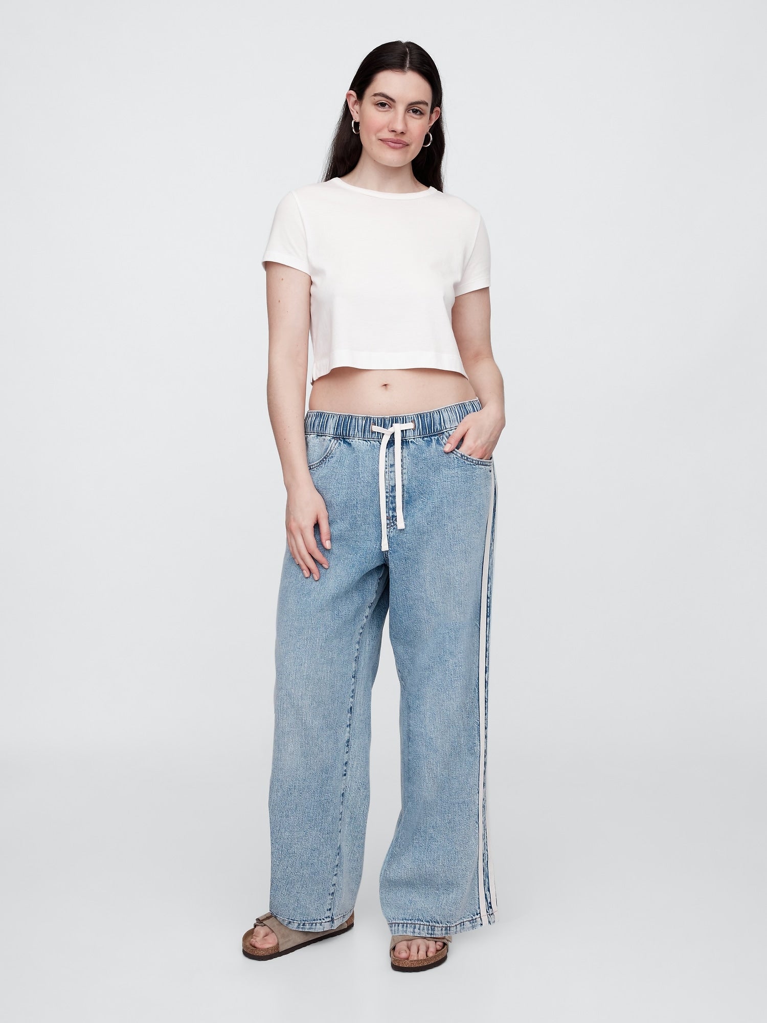 • Lavado índigo claro con rayas laterales
