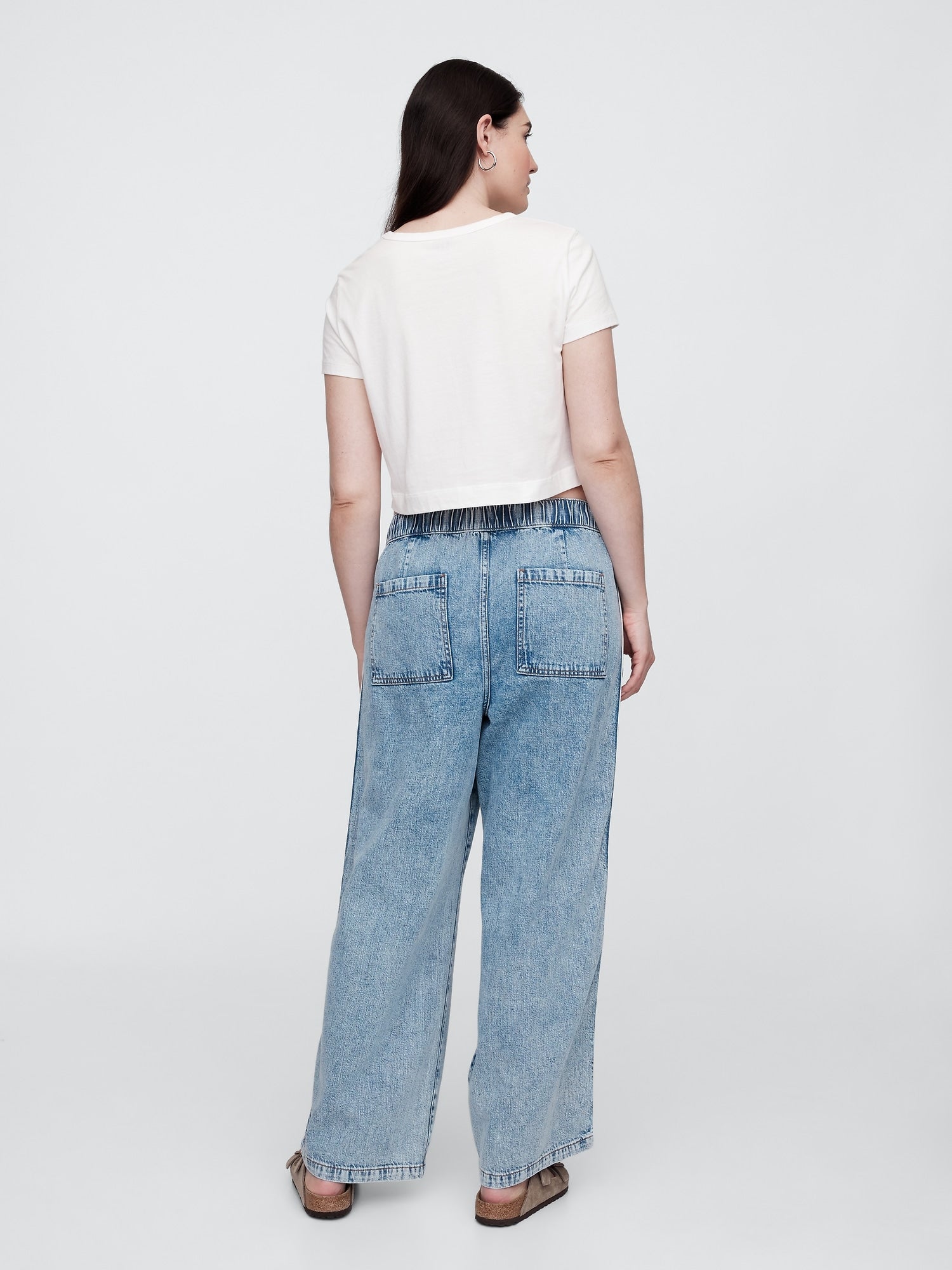 Jeans con Cintura Elástica Talle Alto con Bolsillos | Line Up Shop