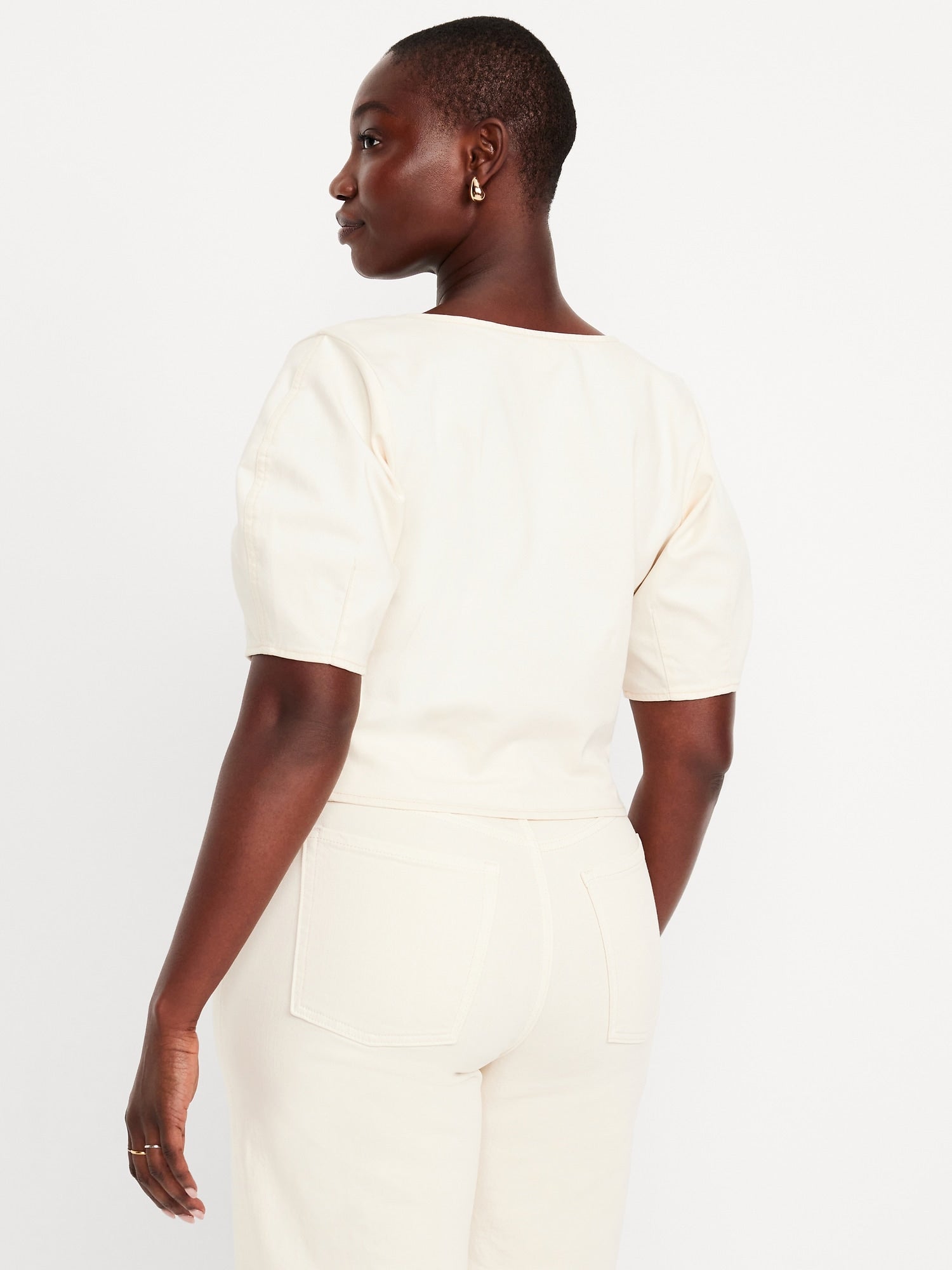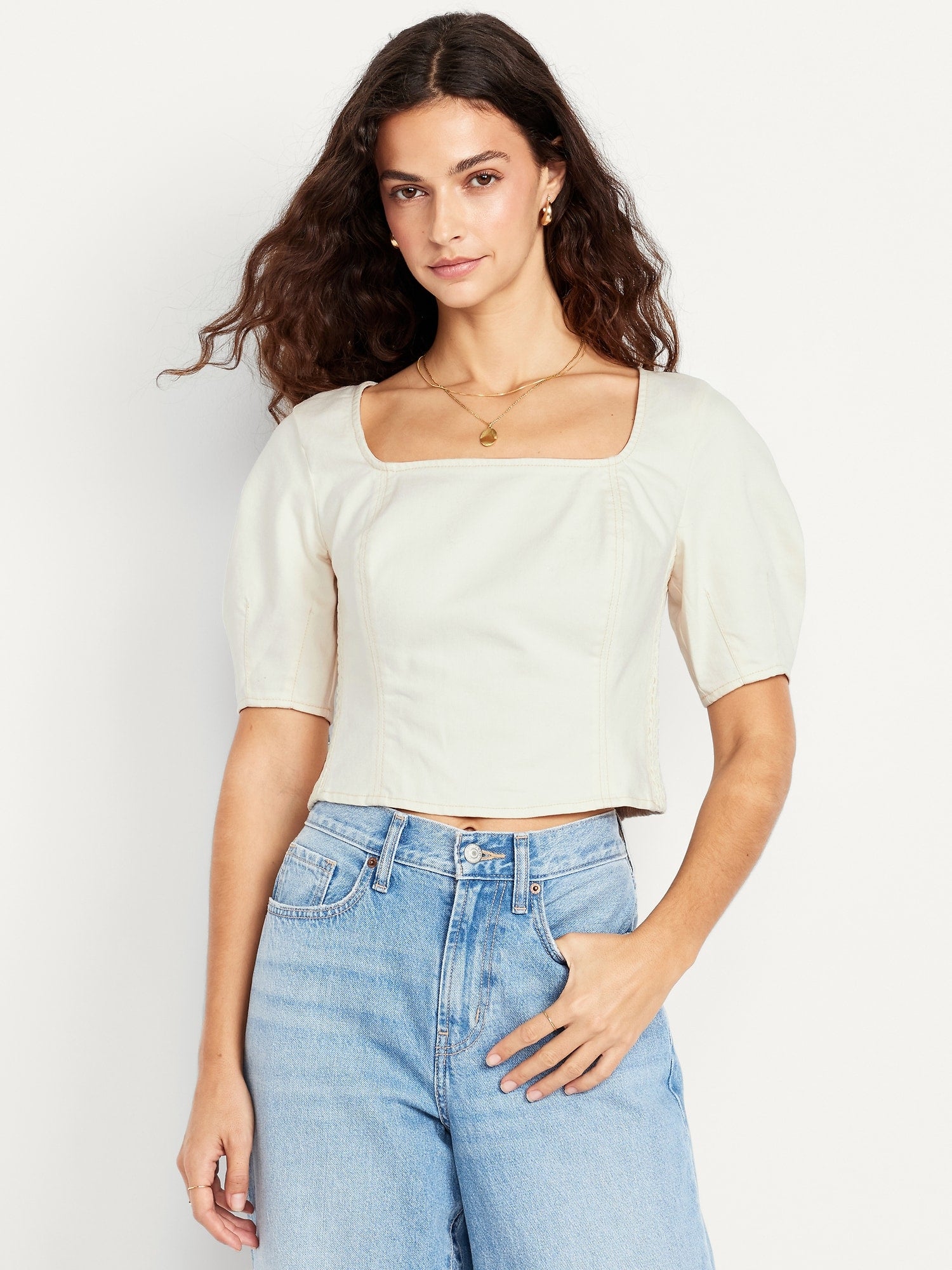 Blusa Denim con Cuello Cuadrado | Line Up Shop