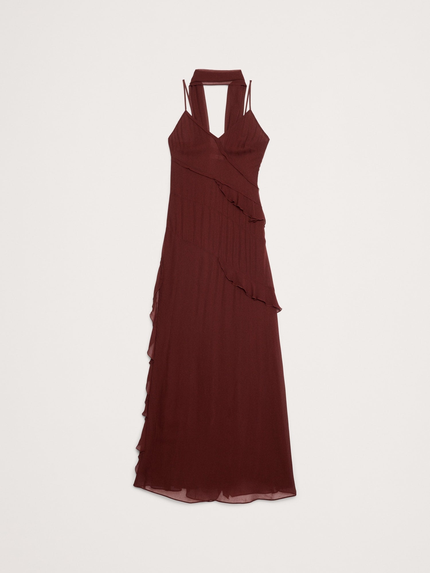 Vestido Largo con Volantes y Detalle Bufanda | Line Up Shop