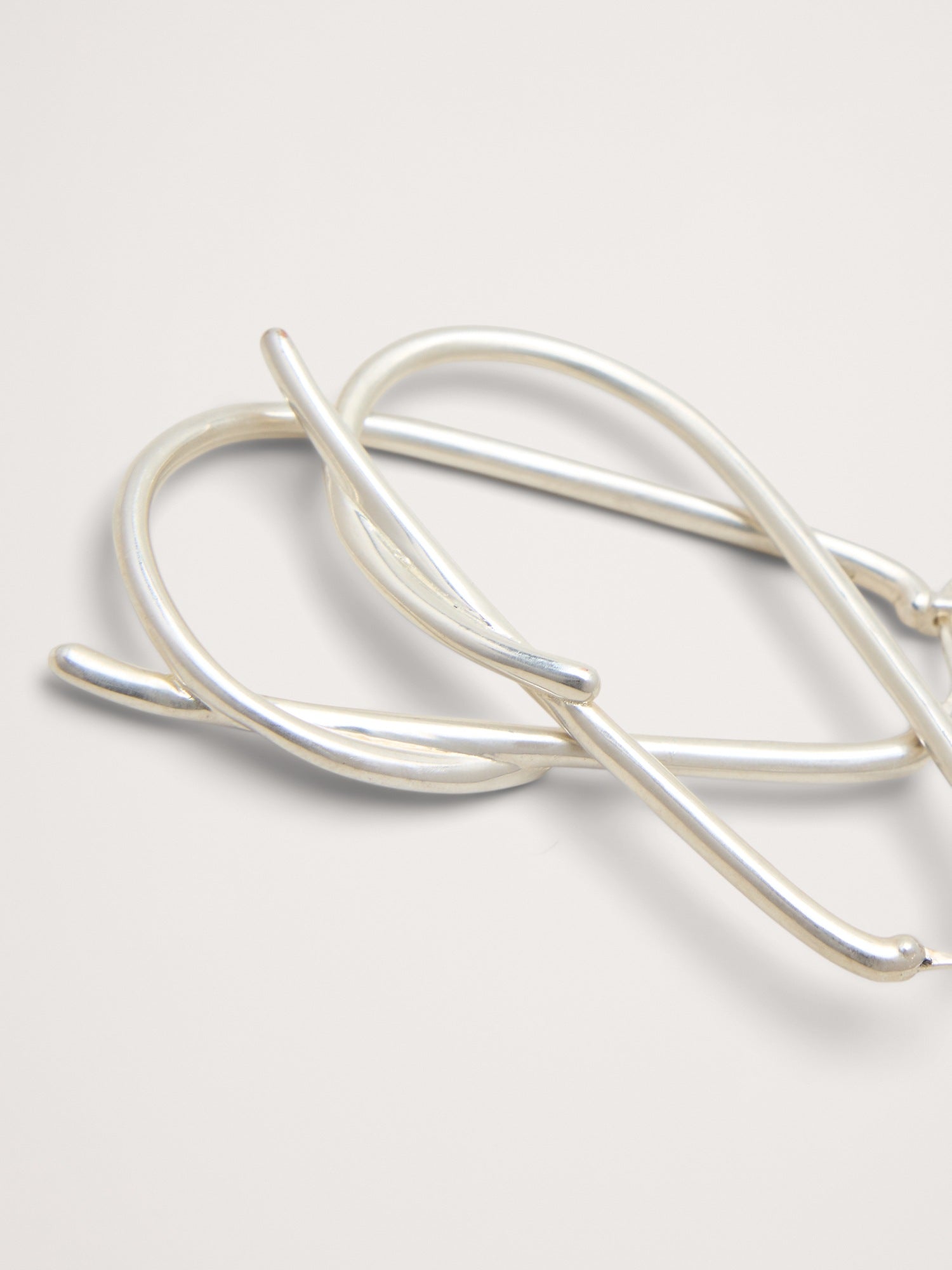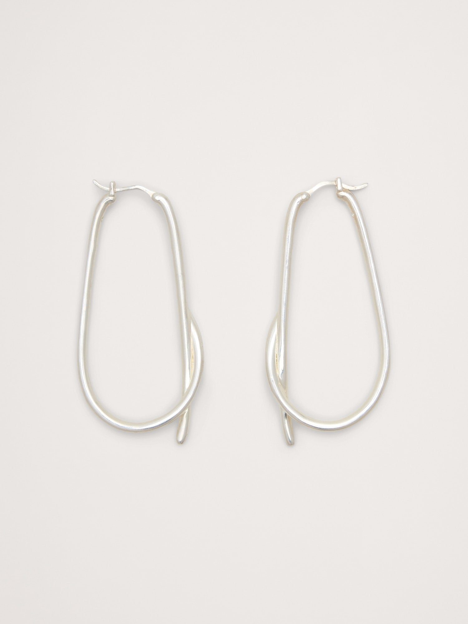 • Una versión orgánica del arete clásico de aro, reinventado como un nudo continuo con un final colgante.