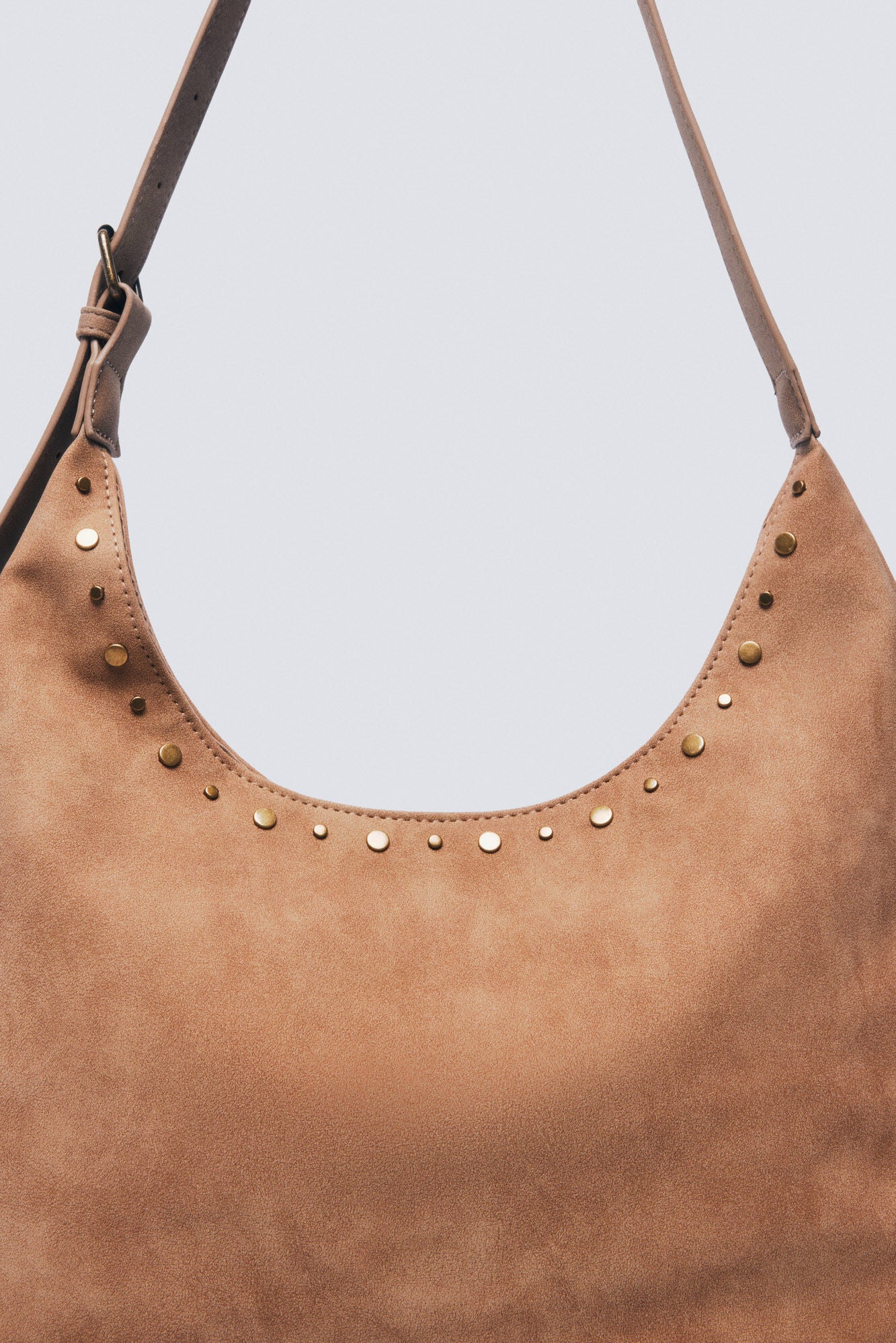 • Bolso saca con asa para colgar al hombro con hebilla, con cierre de imán y con detalle de tachas metálicas