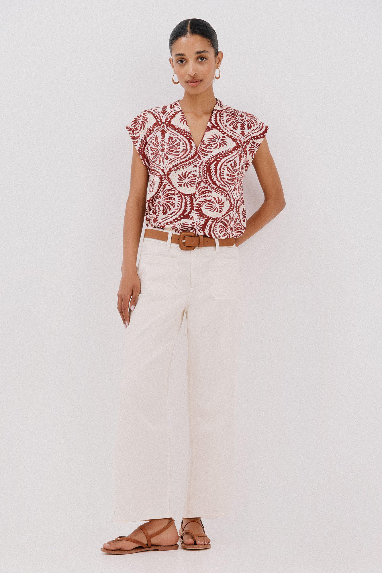 Camiseta Cuello V con Detalle Fruncido | Line Up Shop