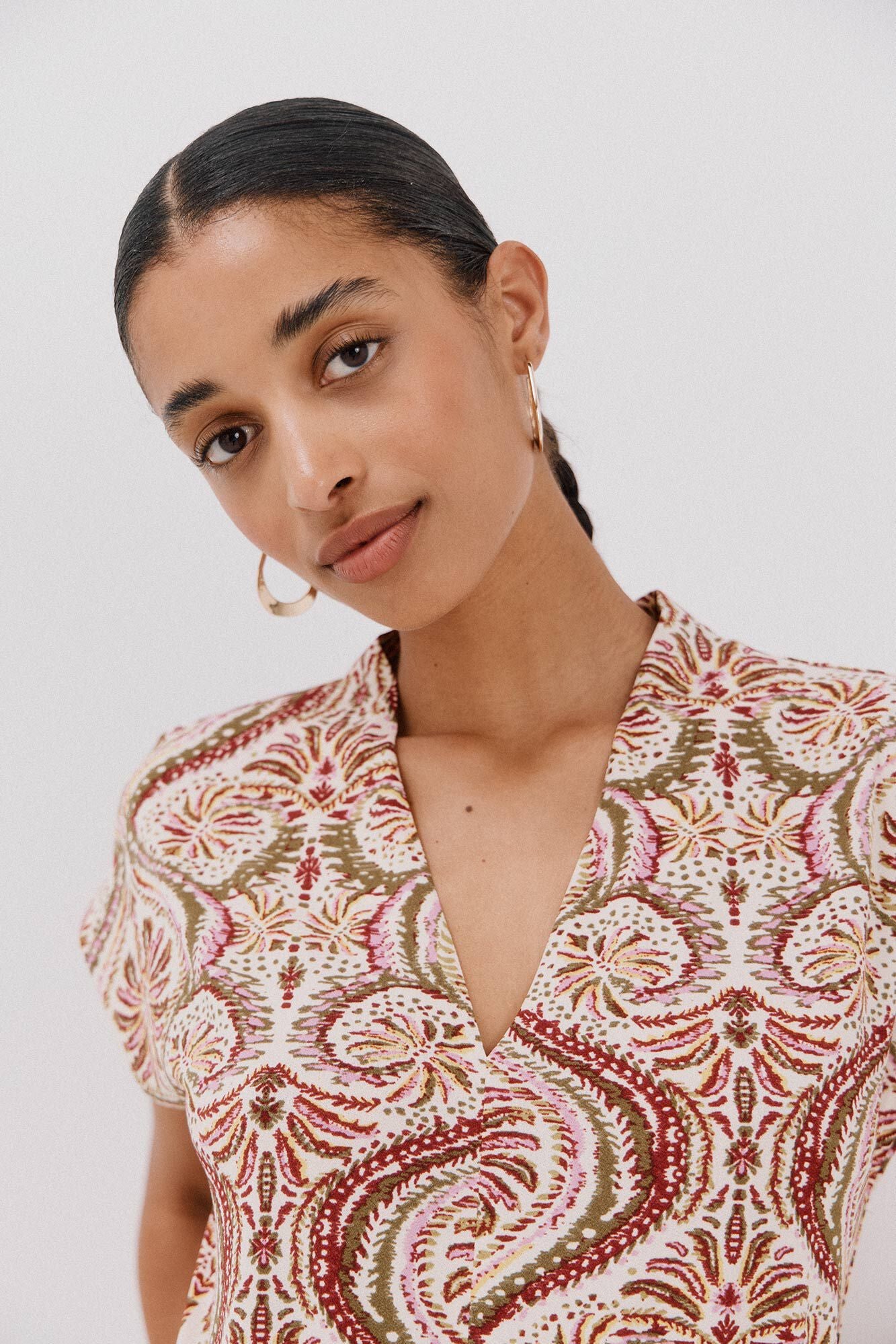 • Camiseta en tejido elástico estampada