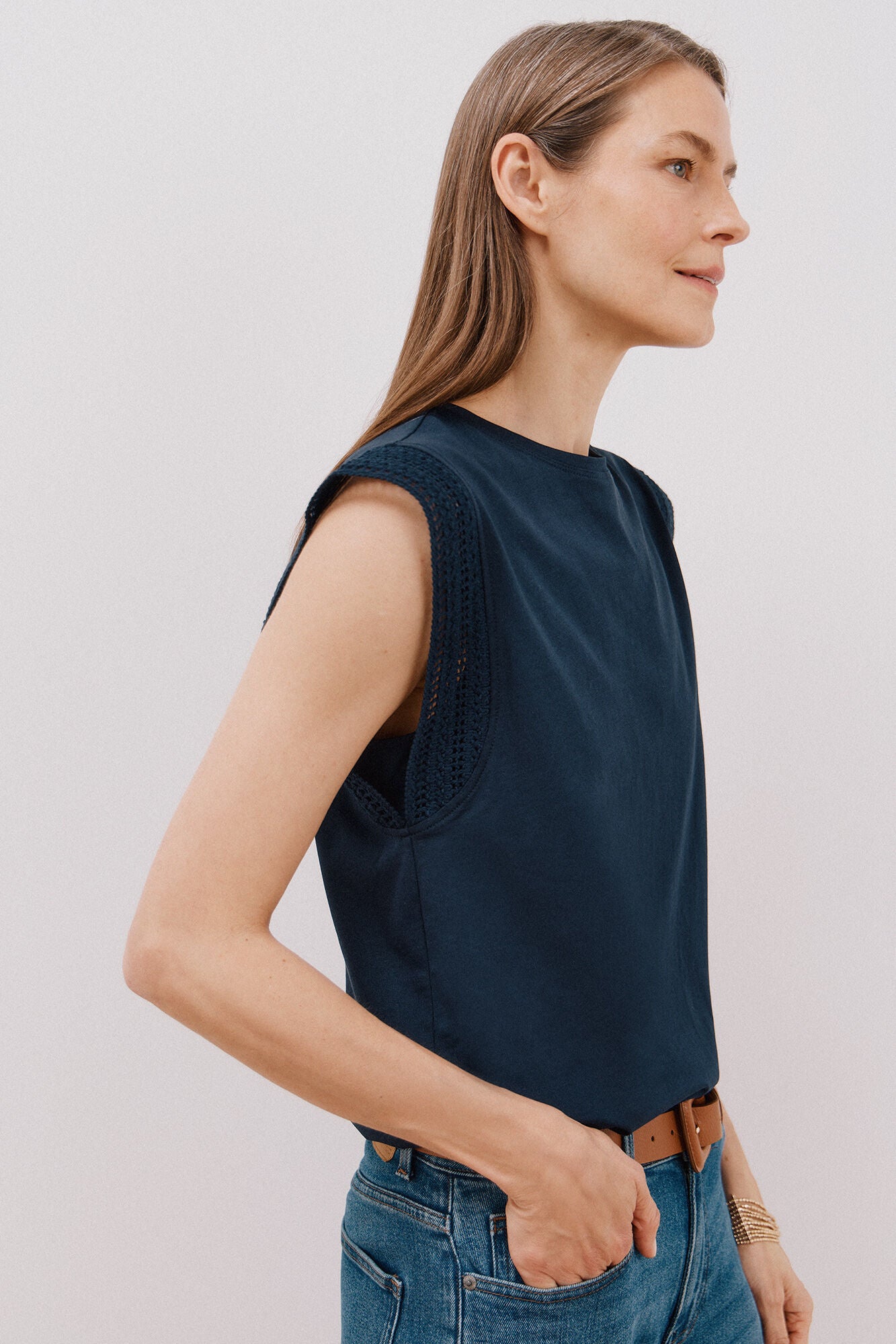 • Silueta fluida sin mangas