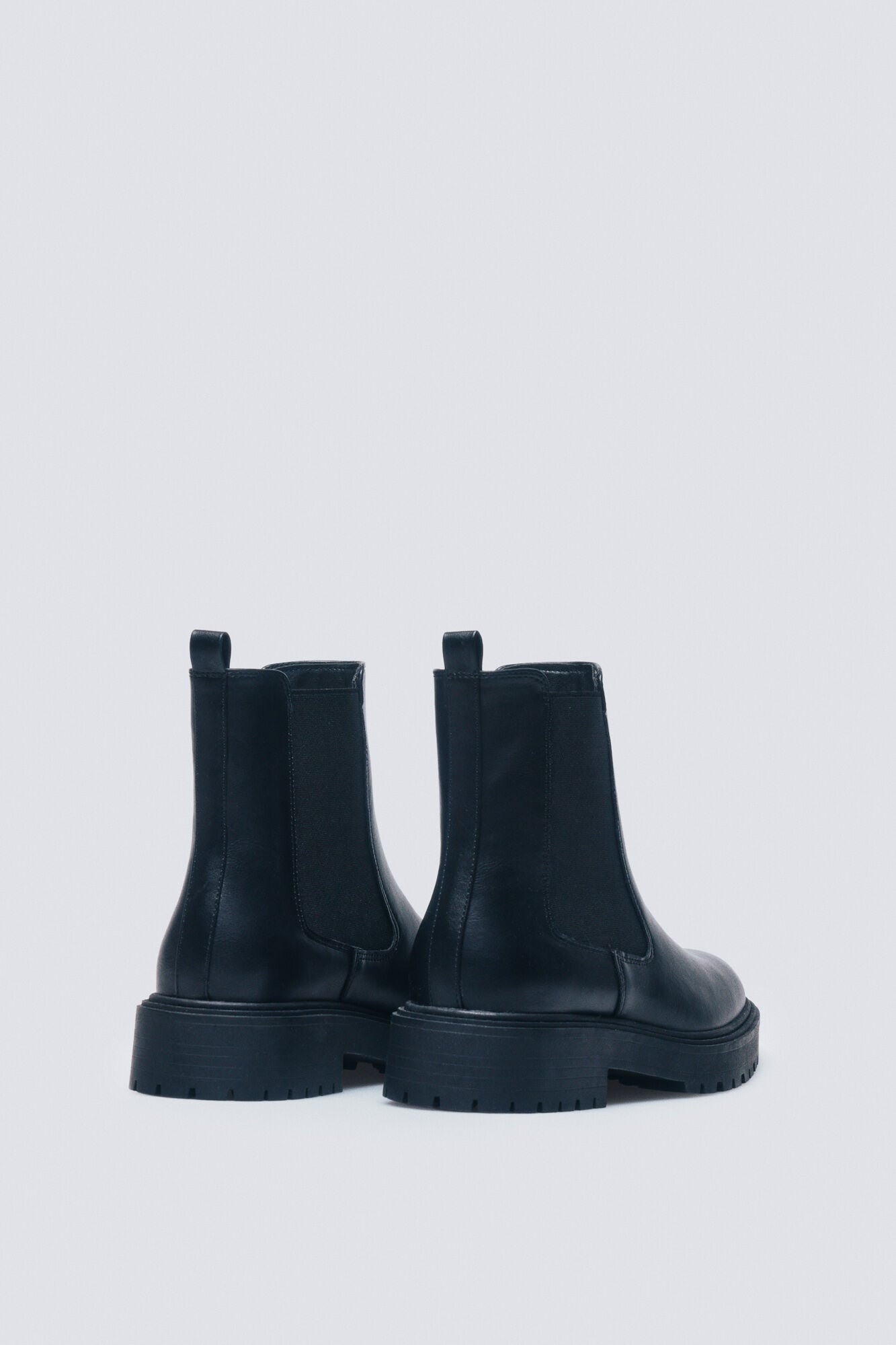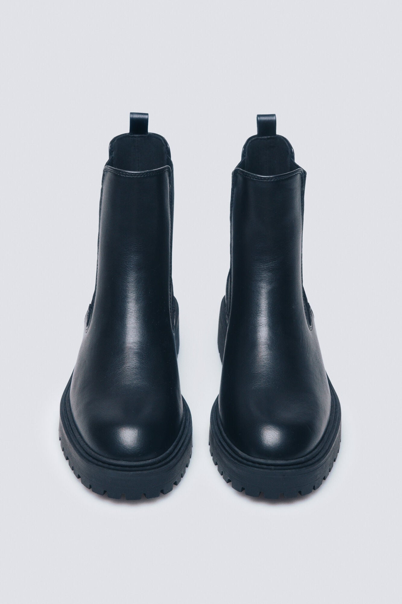 • Botines con suela gruesa, con tirador en la parte trasera y con goma elástica en los laterales