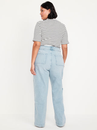Jeans Holgados Talle Alto con Detalle de Parches
