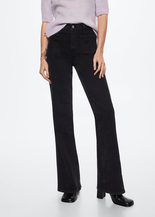 Jeans Acampanado Talle Alto con Bolsillos