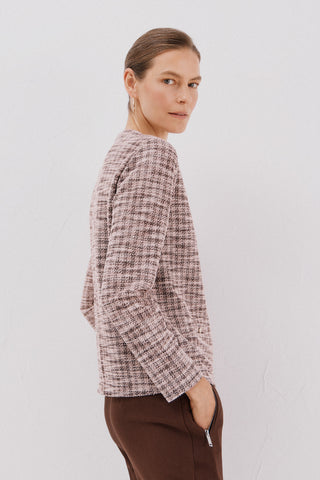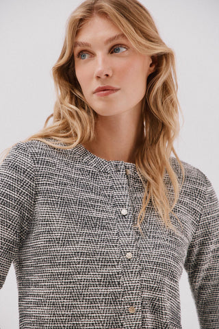 Chaqueta Tweed con Botones Dorados y Bolsillos
