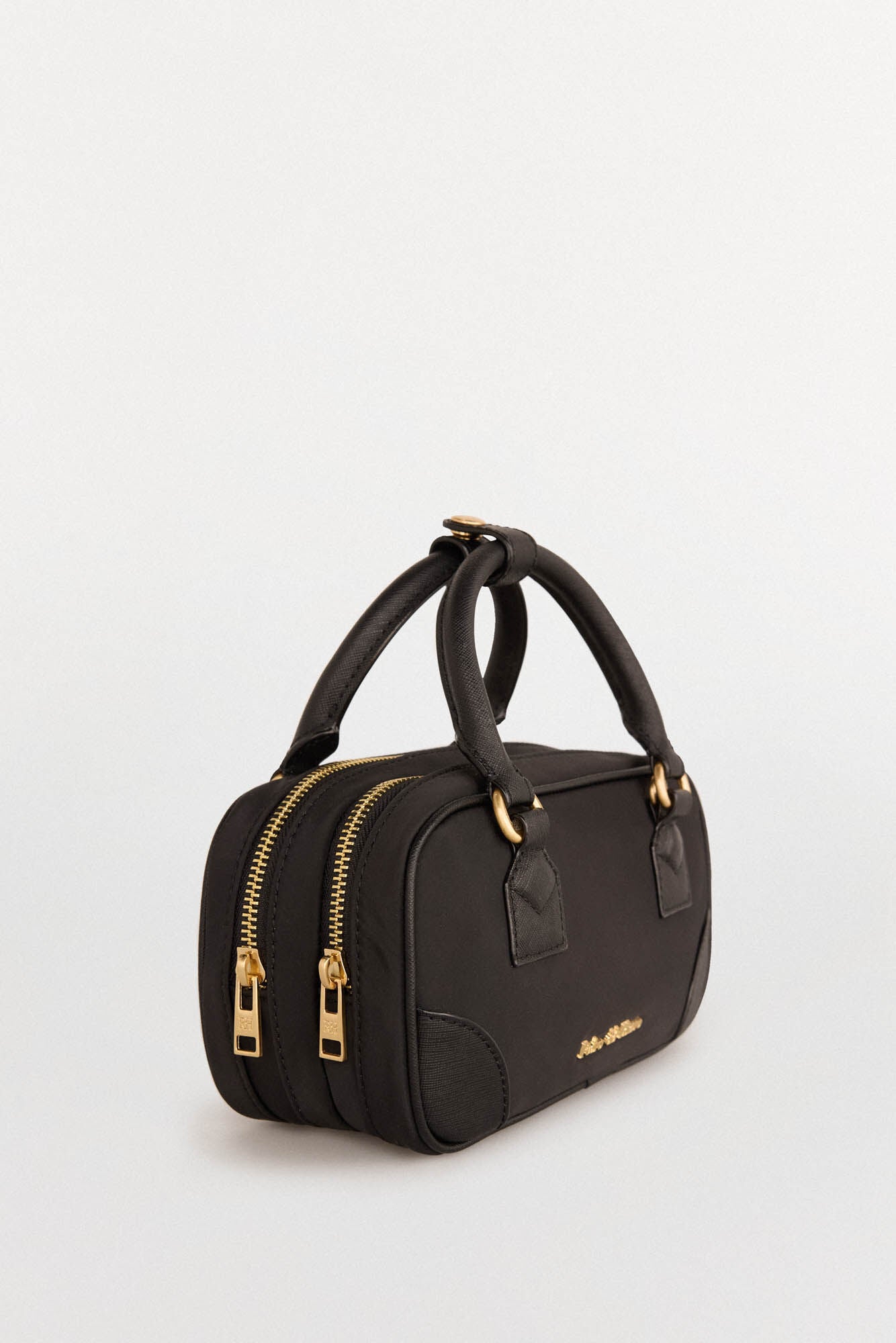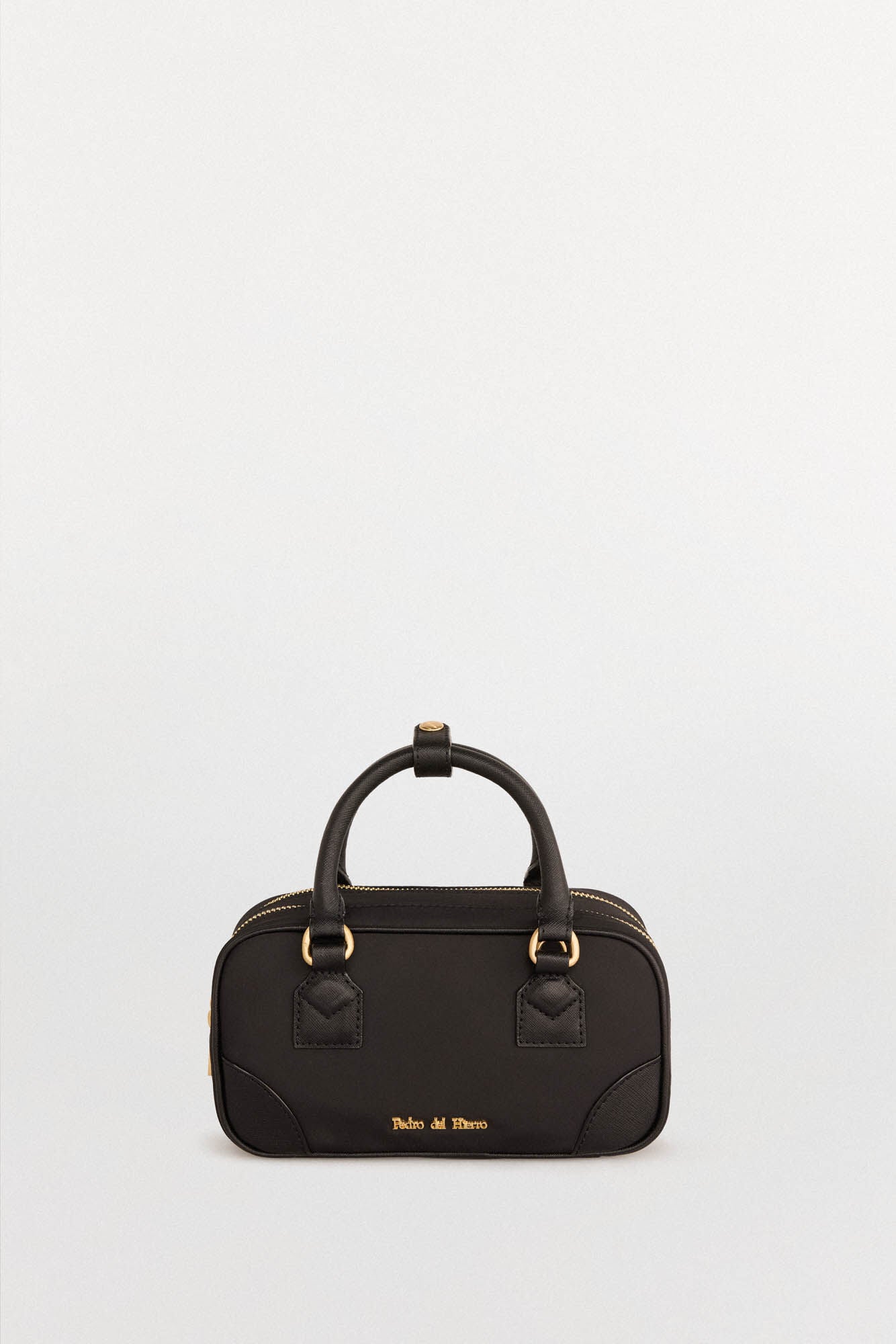 • Bolso bandolera de nylon con doble cremallera y asas realizadas en piel de alta calidad