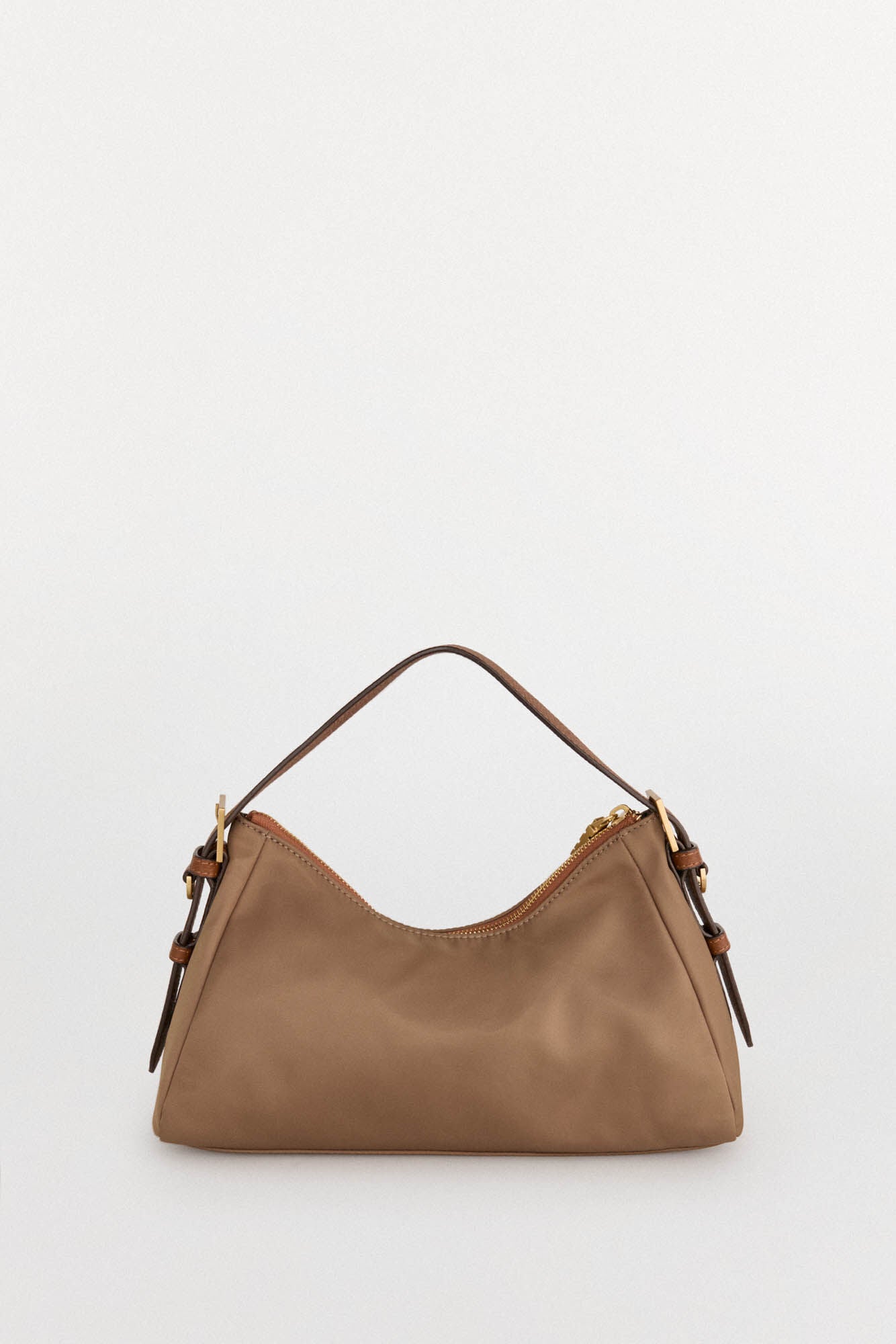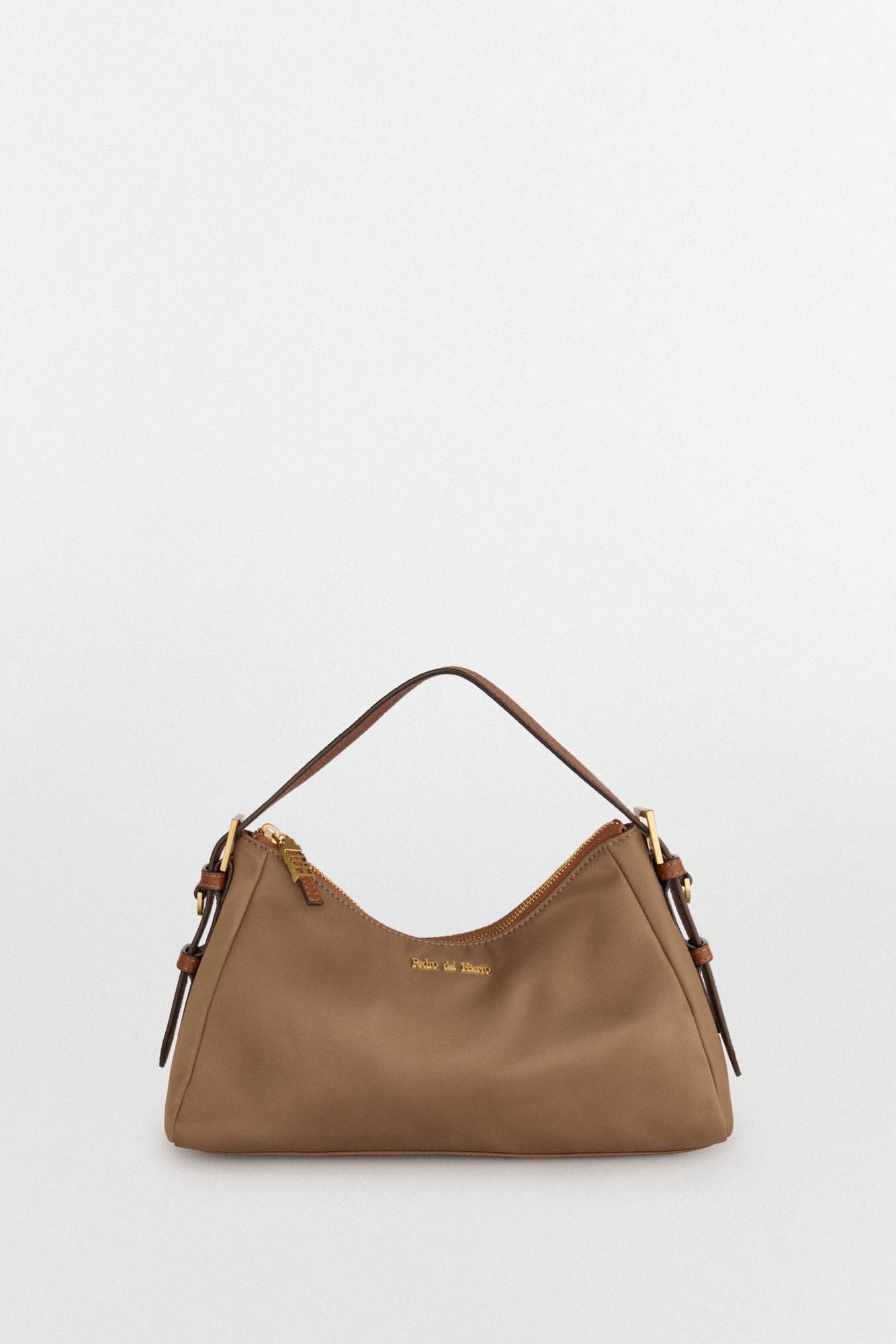 • Bolso de Hombro realizado en nylon con asas y detalles en piel