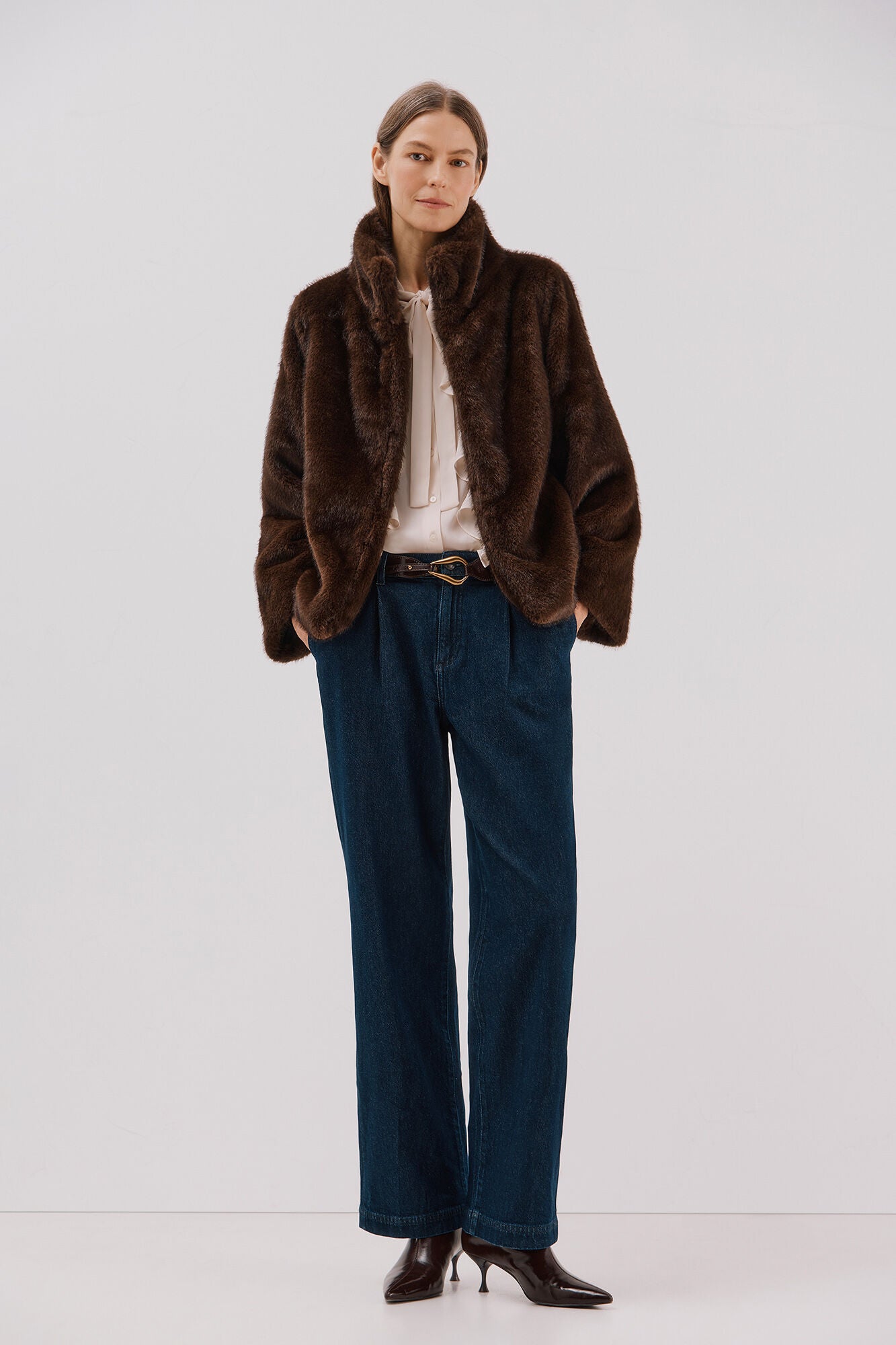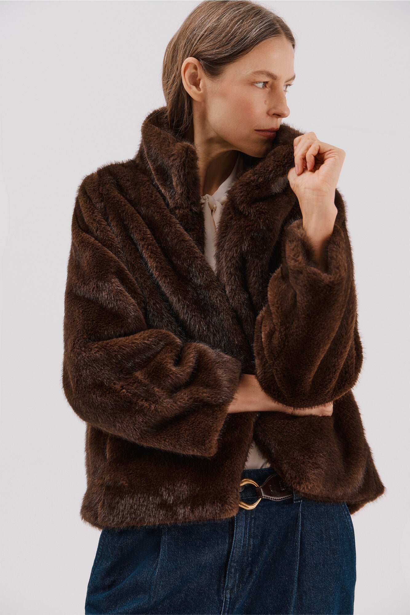 • Chaqueta corta en tejido efecto pelo