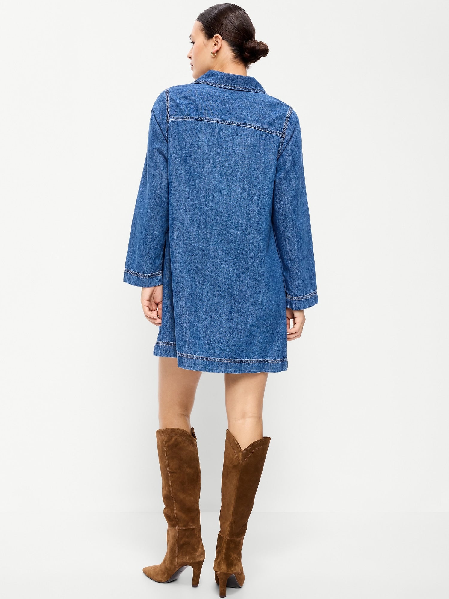 Vestido Denim Cuello V con Manga Acampanada | Line Up Shop