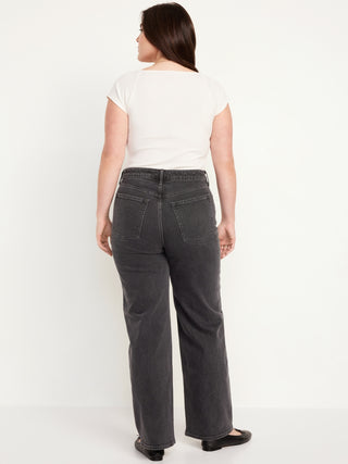 Jeans Rectos Talle Alto con Detalle Desgastado