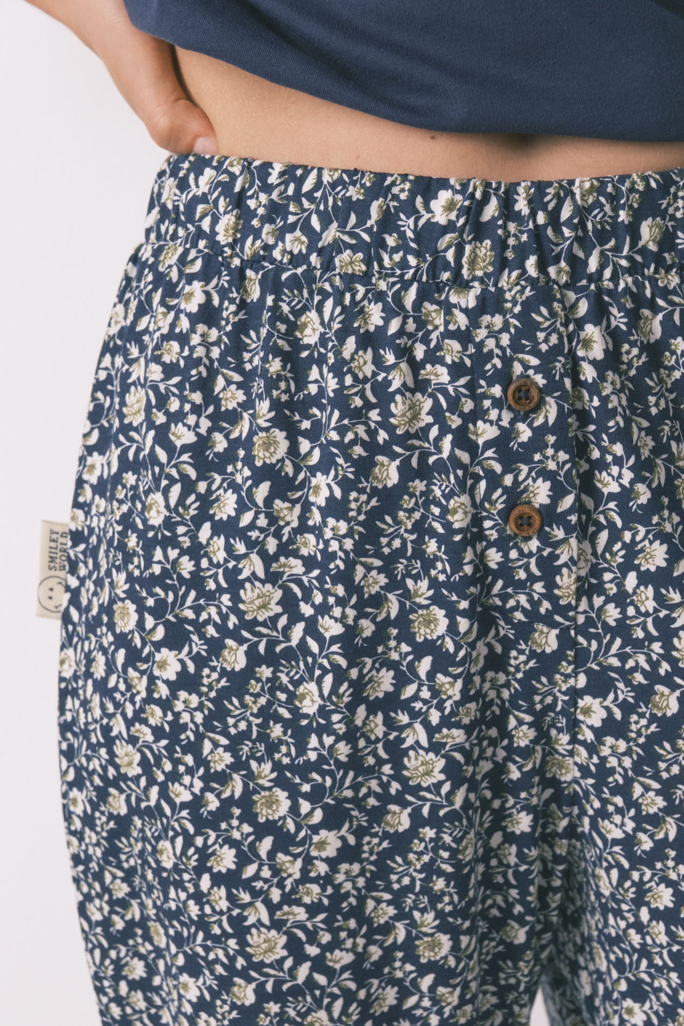 • Pantalón corto con estampado floral integral, cintura elástica y bragueta con botones decorativos de madera. Ideal para dormir o relajarse en casa, esta cómoda prenda será una gran incorporación a tu armario