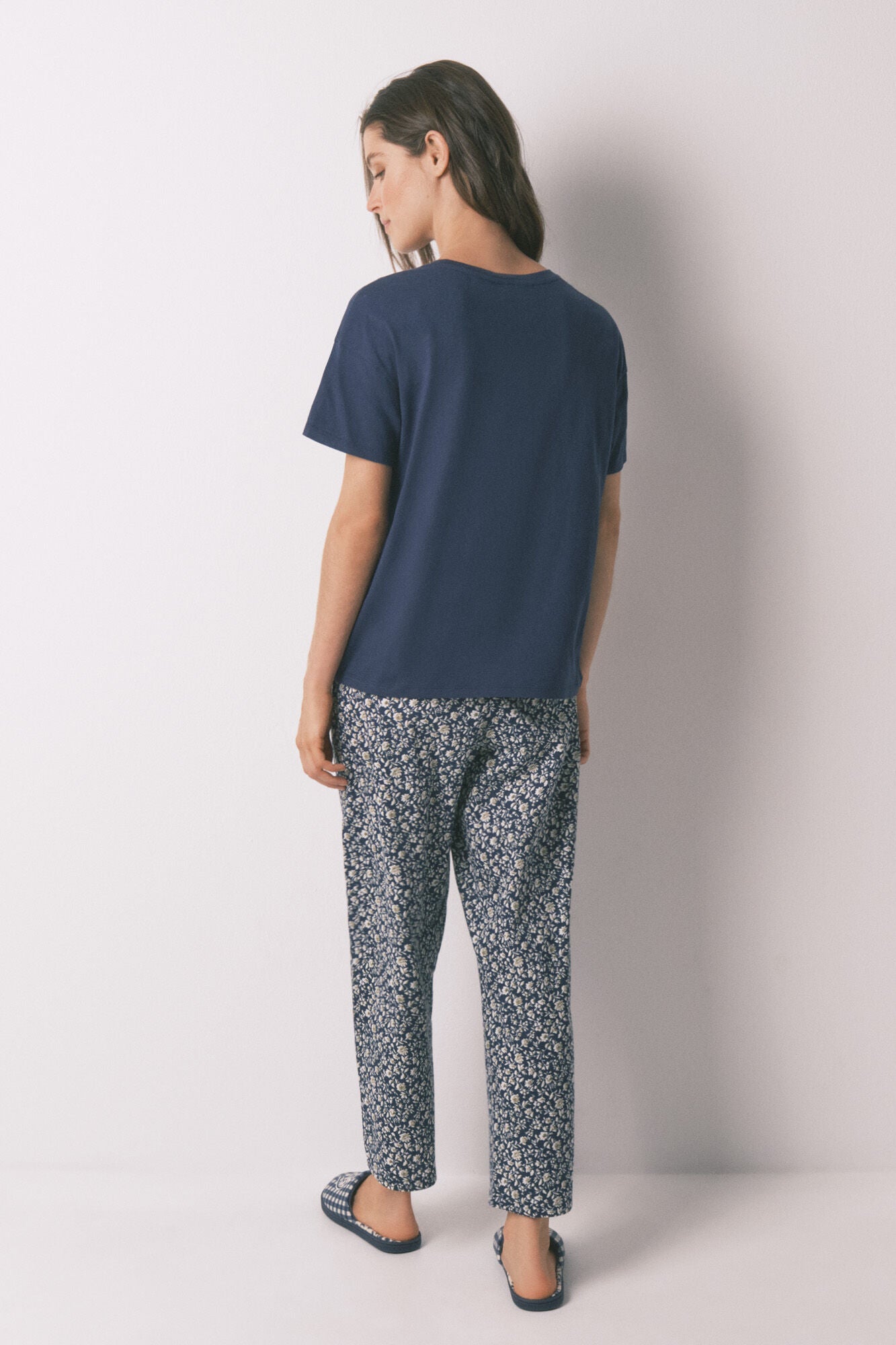 • Pijama de manga corta con pantalón largo 100 % tejido