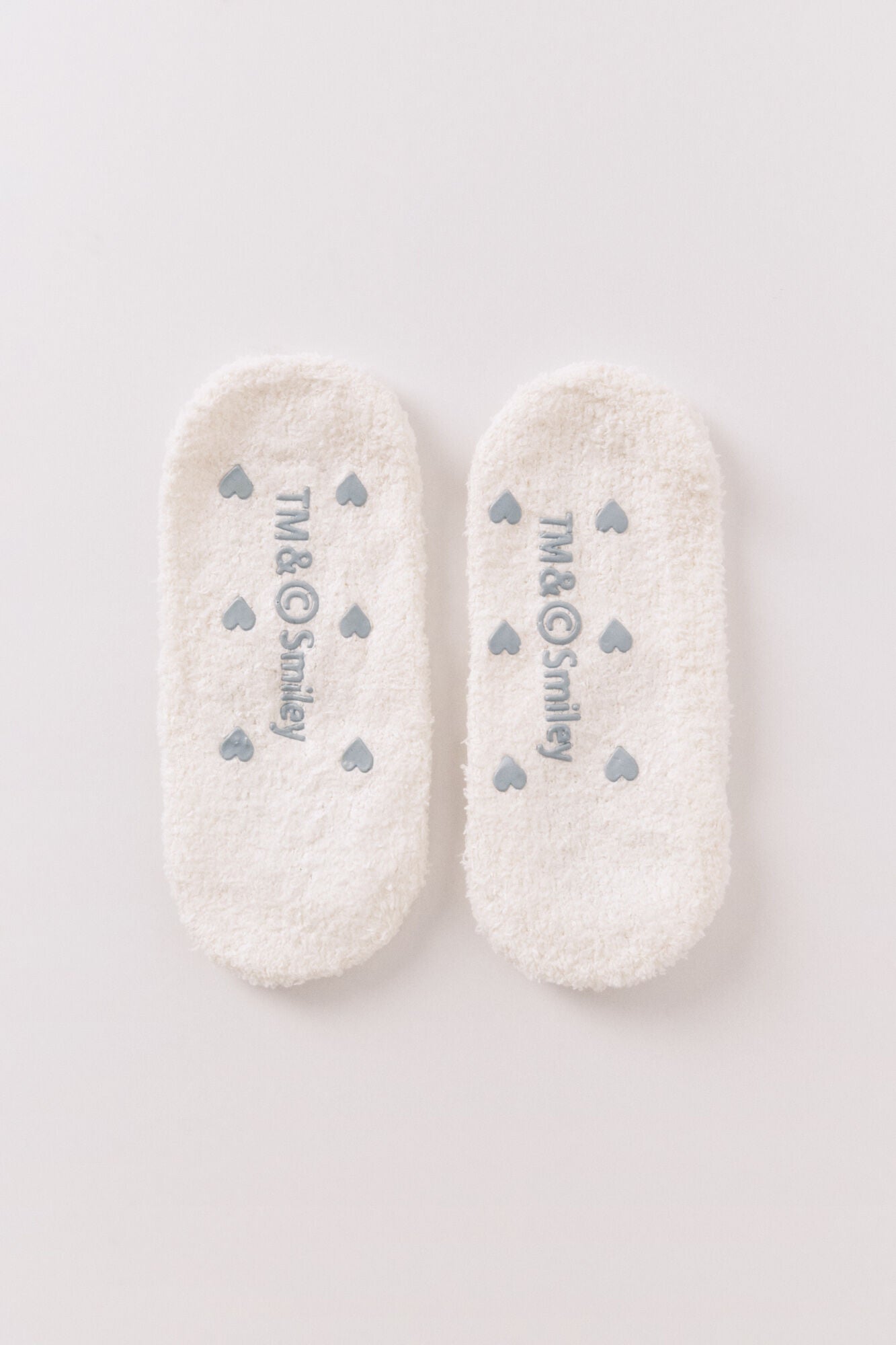 • Calcetines slip on, con textura fluffy y diseño con licencia de Smiley para un toque divertido